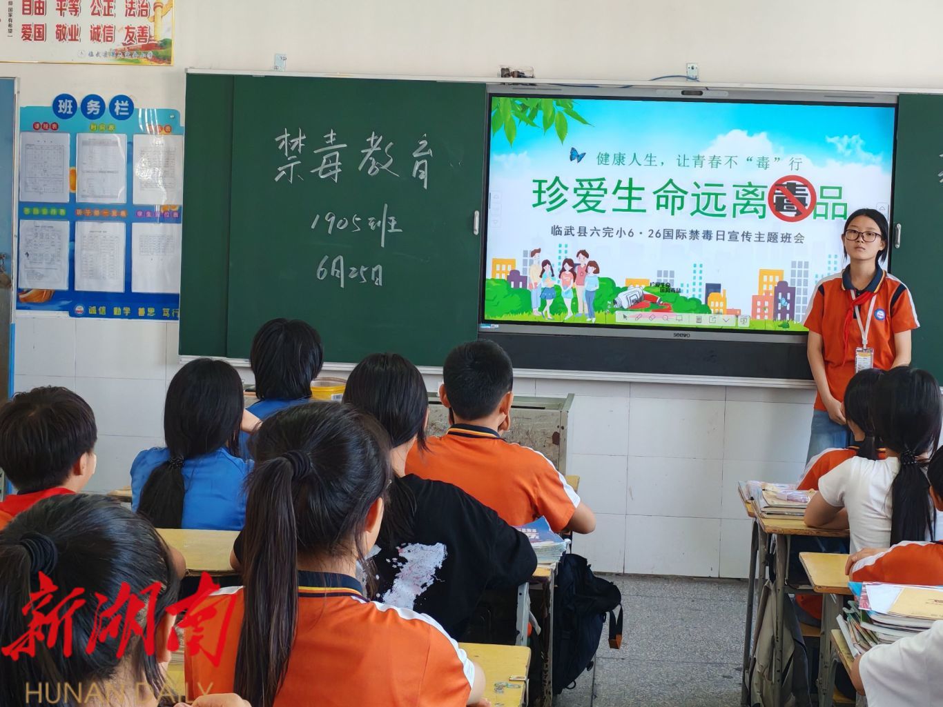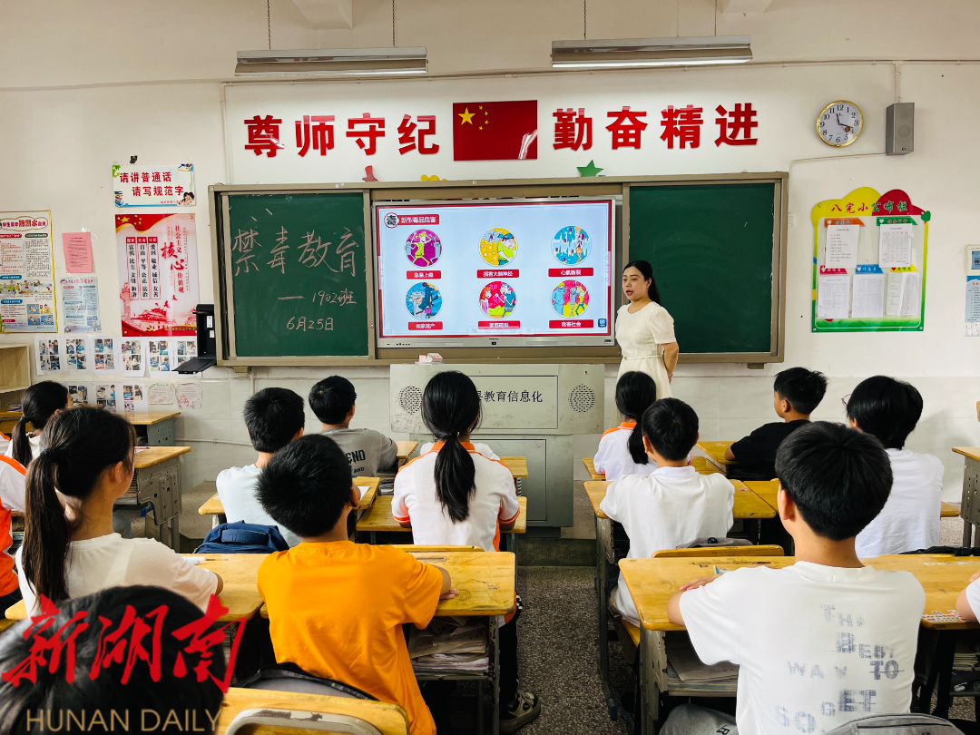 “毒品危害巨大,它损害身心健康、破坏家庭、诱发犯罪……”近日,在临武县八完小的教室内,教师正宣讲毒品的危害,呼吁大家提升识毒、防毒、拒毒意识。(通讯员 吴志萍)