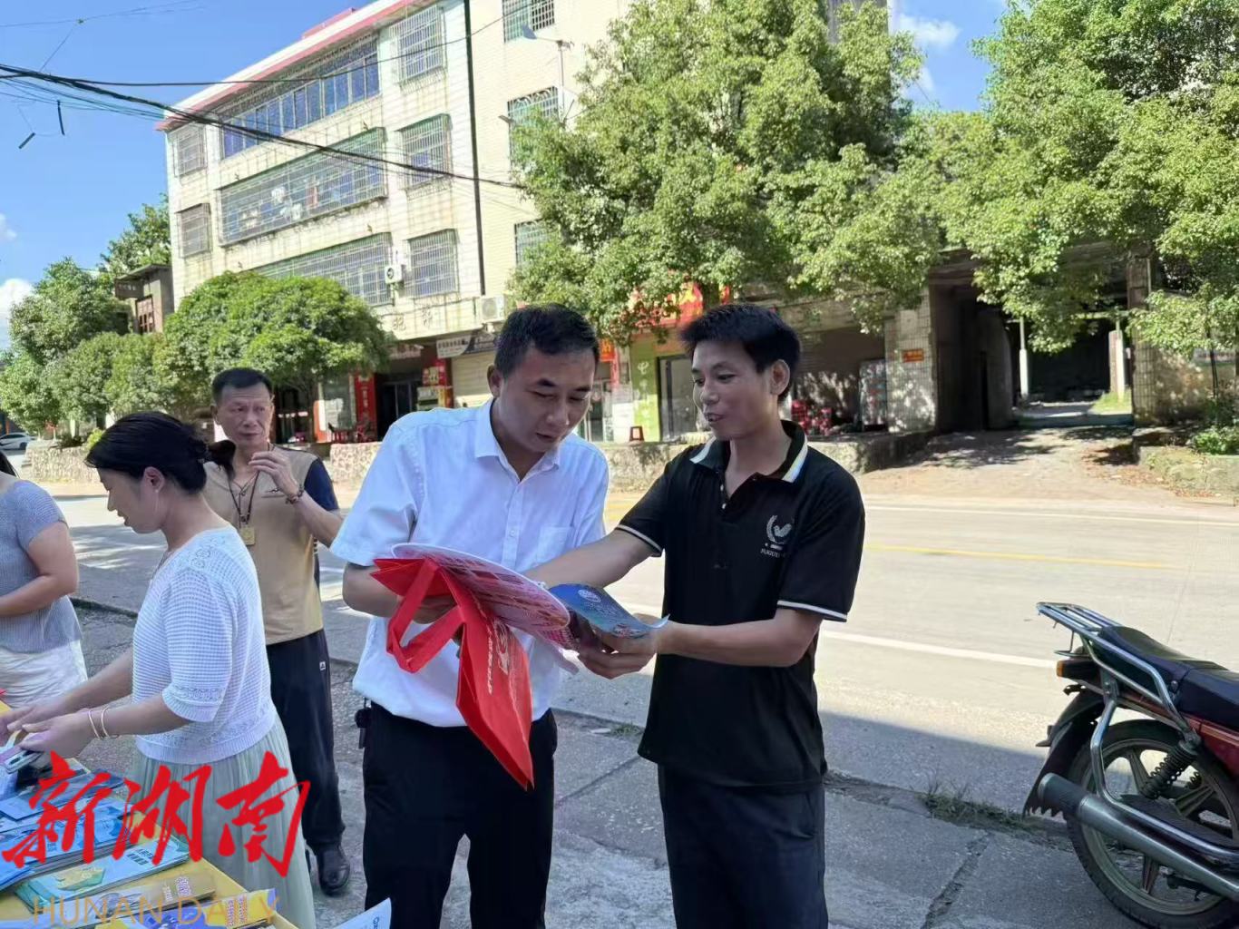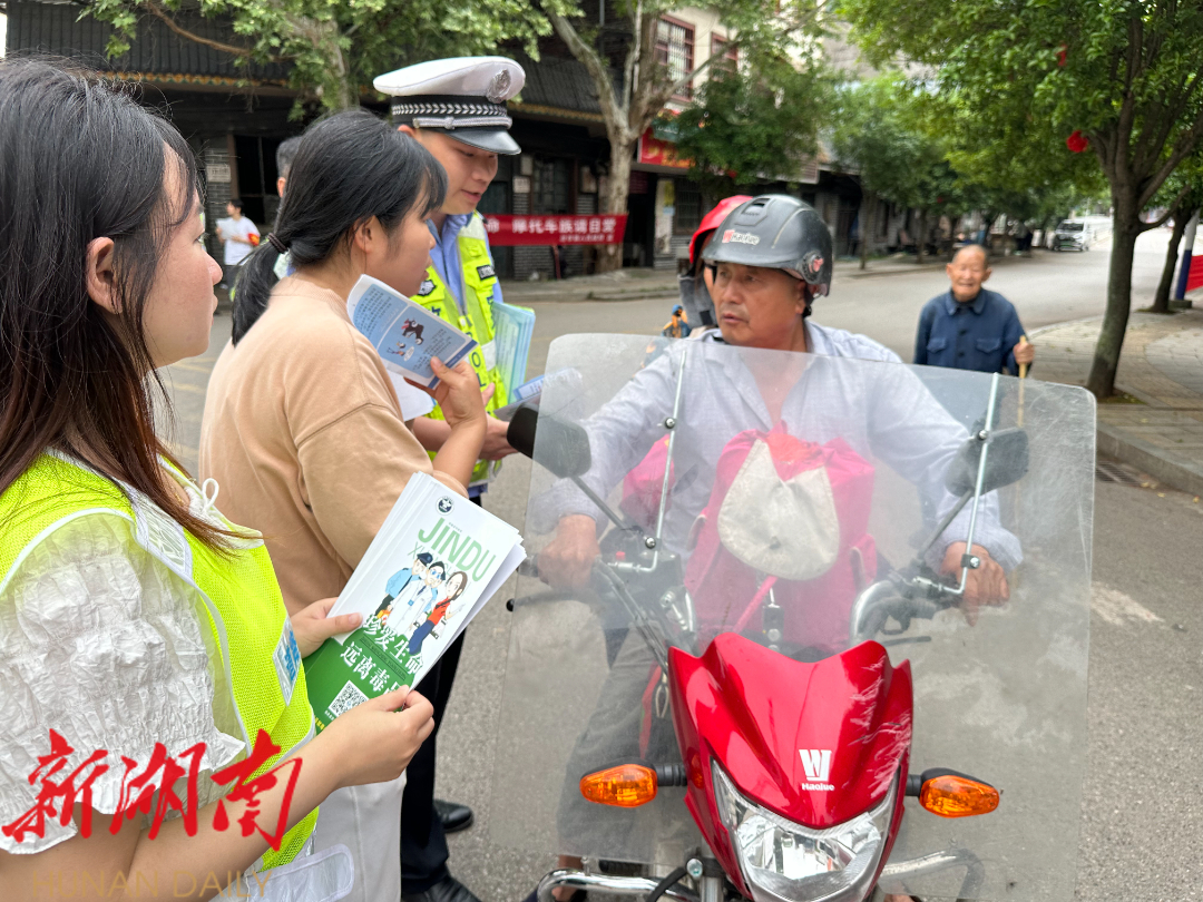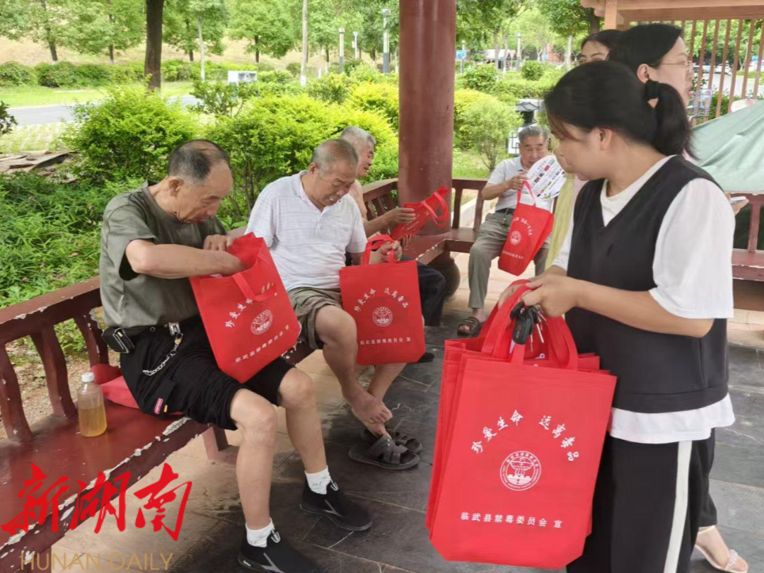 6月26日国际禁毒日当天,临武县万水乡多部门组成禁毒宣讲团,通过走进学校宣讲、街头发放宣传手册等方式开展立体化宣传,为群众送上禁毒知识“大礼包”。(通讯员 黄铭轩)