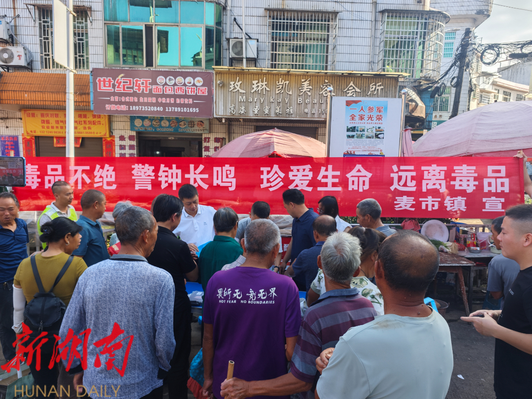 在“6.26”国际禁毒日当天,临武县麦市镇开展形式多样的禁毒宣传活动,进一步提高群众的识毒、防毒、拒毒意识,营造全民参与禁毒的良好氛围。(通讯员 黄美君)