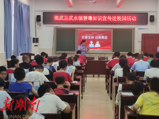 6月26日,临武县金江镇组织党员干部20多人成立禁毒宣讲队,深入到金江中学、金江小学为1800多名师生普及禁毒知识,播撒禁毒“种子”,为构建平安校园、筑牢青少年健康成长安全防线奠定坚实基础。(通讯员 刘当 肖文杰)