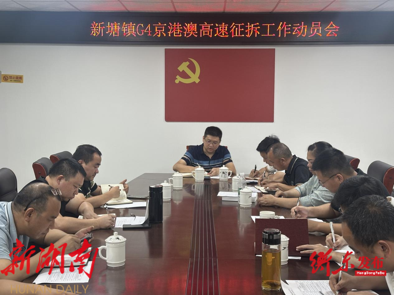 新塘镇党委书记赵健组织召开相关会议,安排调度G4京港澳高速扩容工程(新塘段)项目征拆、 分散式饮用水水源地保护范围划定、秸秆禁烧、防溺水等工作。 (通讯员 罗 明)