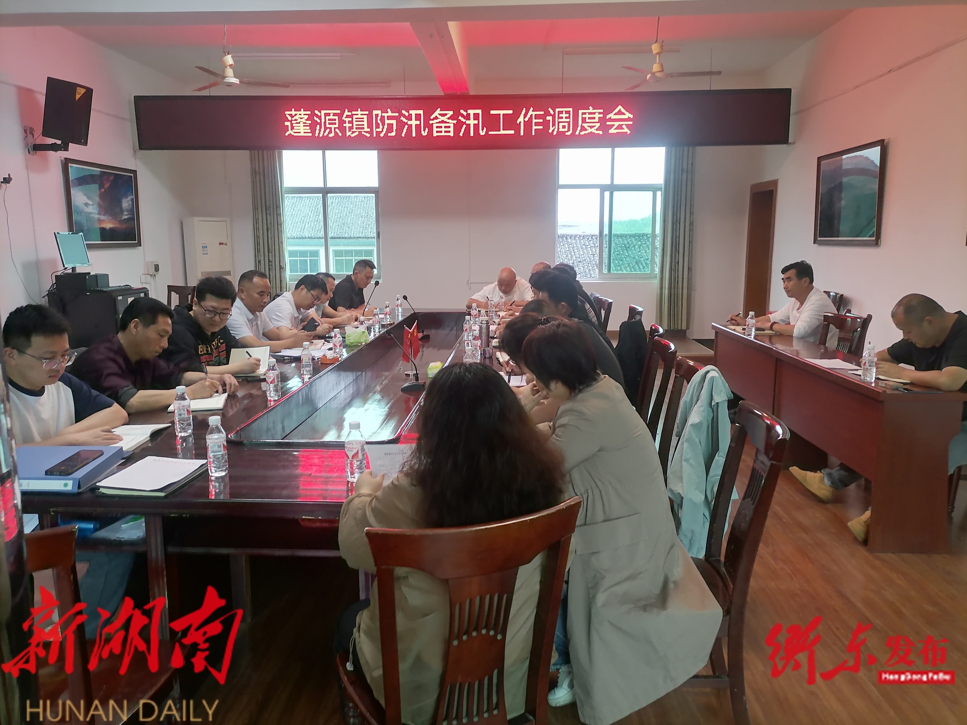 蓬源镇党委书记刘冬瑞组织召开相关会议,安排调度暴雨天气地质灾害防范、秸秆禁烧、禁毒宣传、防溺水、“利剑护蕾”、校园食品安全、信访维稳等工作;到重点村查看早稻受灾情况。(通讯员 裴 霜)