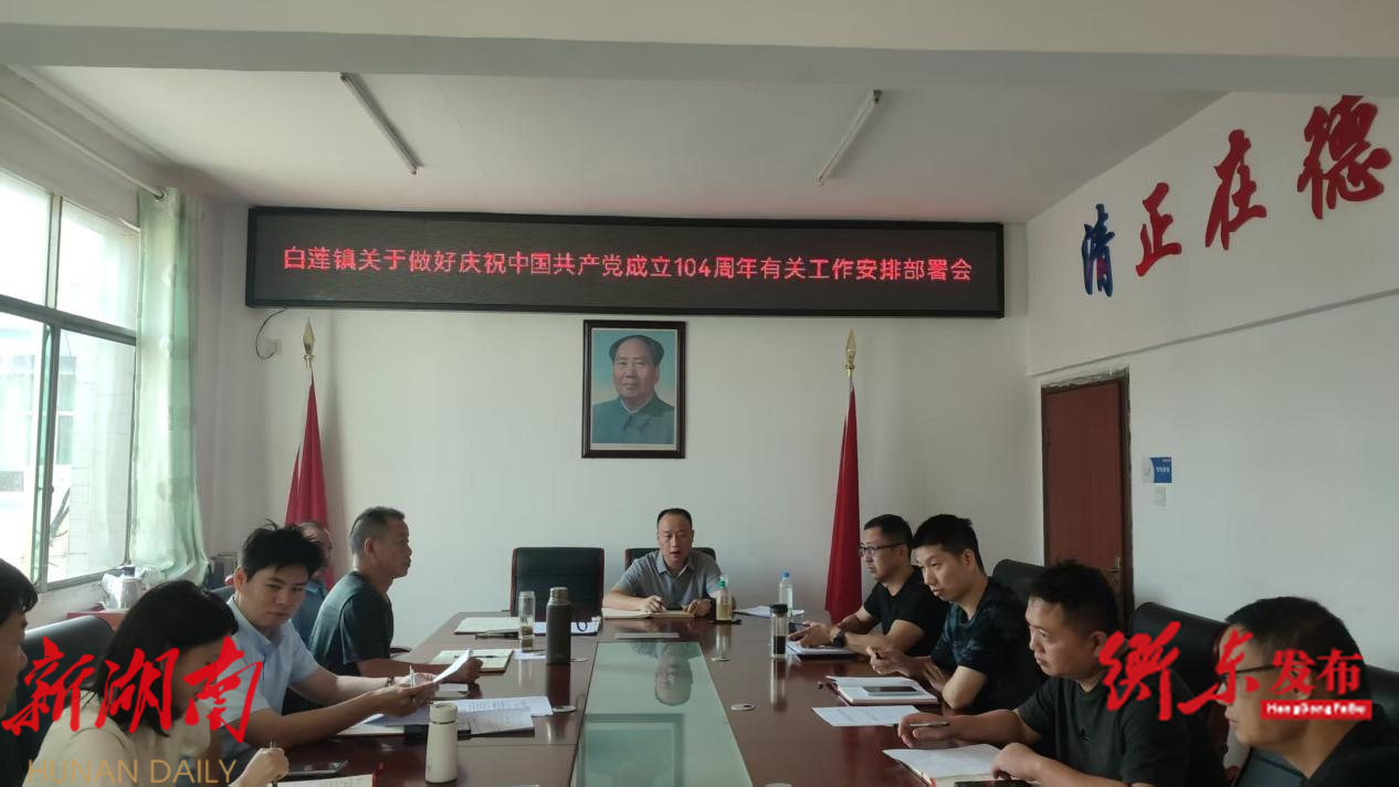 白莲镇党委书记夏坤组织召开相关会议,研究“七一 ”表彰大会和白莲镇第十八届人大五次会议筹备相关事宜 ;重点调度石湾水厂至白莲镇供水管网及加压设施项目建设、安全生产、基层党建等工作。(通讯员 汪浩然)