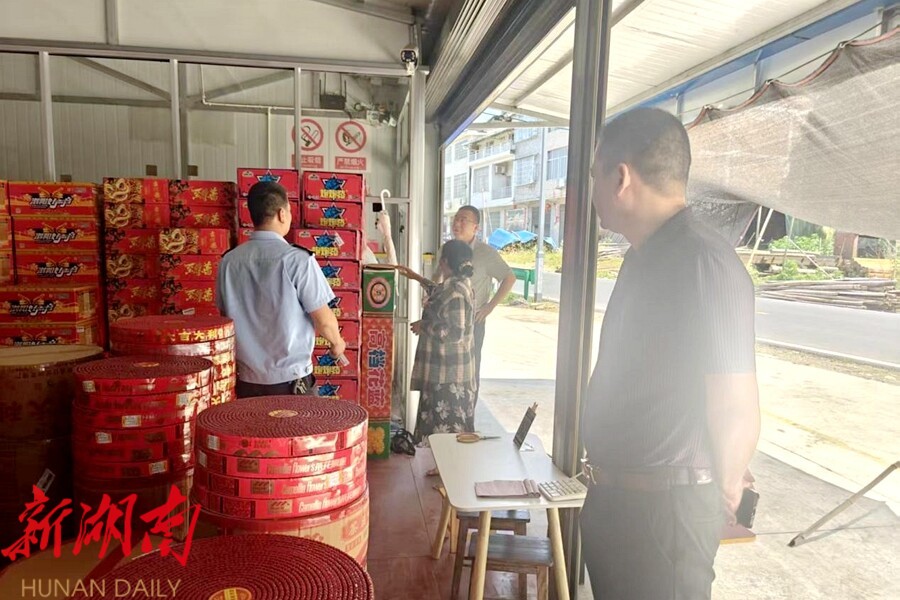 镇领导带队对烟花爆竹店进行安全检查