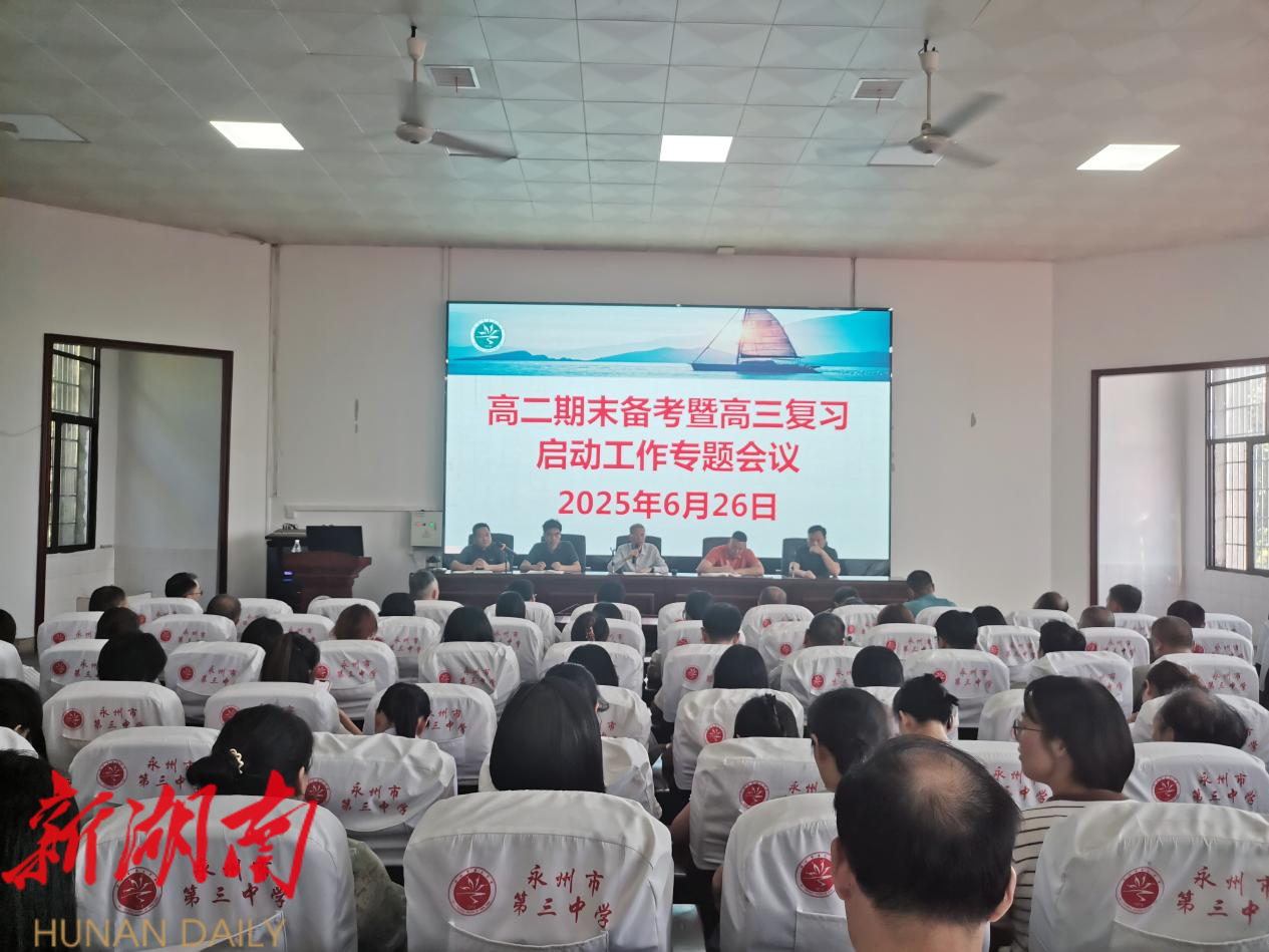 湖南日报·新湖南客户端6月27日讯(通讯员 周晓亮 黄艳辉)为扎实有序推进2026届高三教育教学工作,6月26日下午,永州三中召开期末备考暨高三复习启动工作专题会议。校领导班子、新一届高三年级全体教师参会,共同研讨符合新时代教育要求的备考路径。