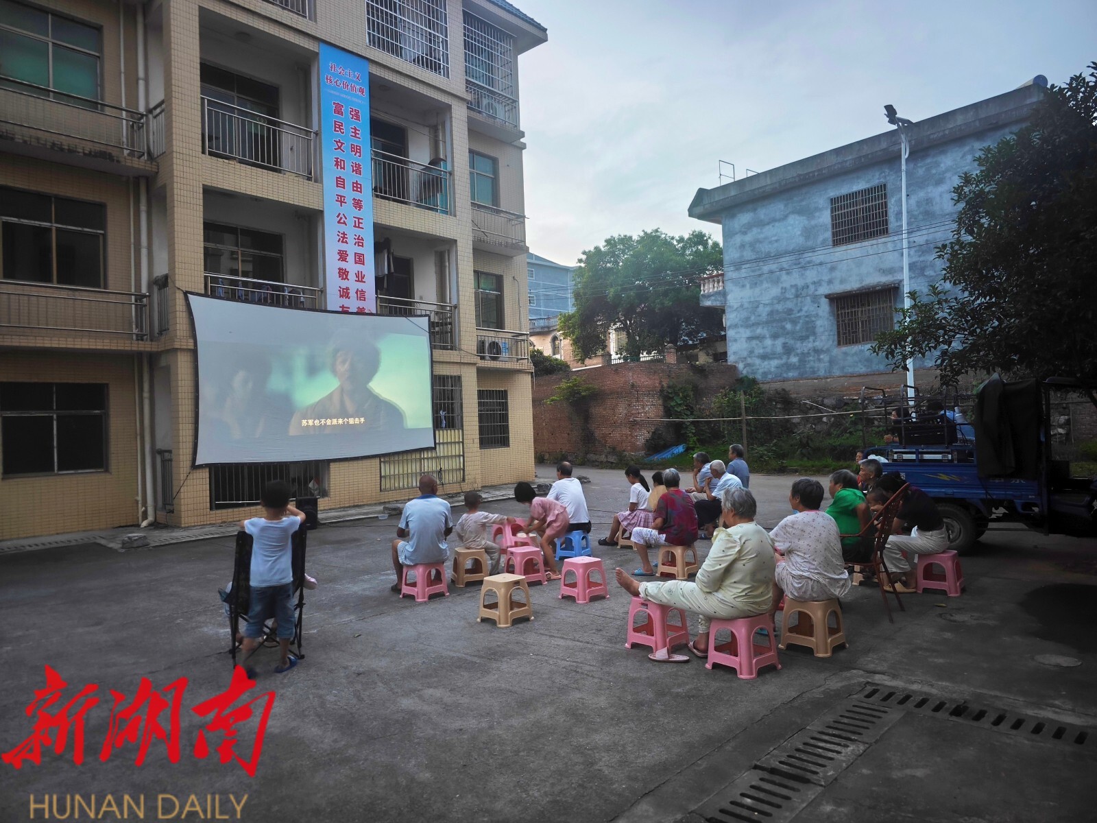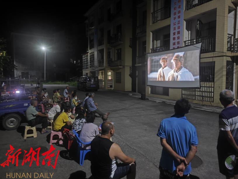 湖南日报·新湖南客户端6月27日讯(通讯员 王硕)为丰富搬迁安置点居民精神文化生活,切实提升群众幸福感,近日,永兴县高亭司镇油市社区 在安置点组织开展“送影下乡”公益放映活动,为安置点居民送上了一场精彩文化盛宴,吸引了60余名群众驻足观影。
