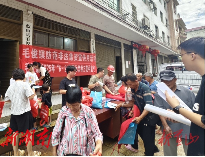 新蓝山客户端6月27日讯 (通讯员 刘柏芝)6月27日上午,毛俊镇开展禁毒暨防范非法集资集中宣传活动。