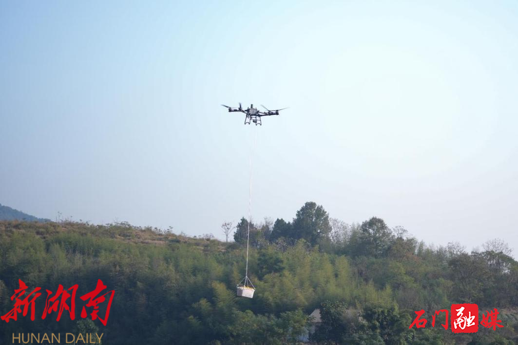 石门县新铺镇中河铺村村民通过无人机运输脐橙