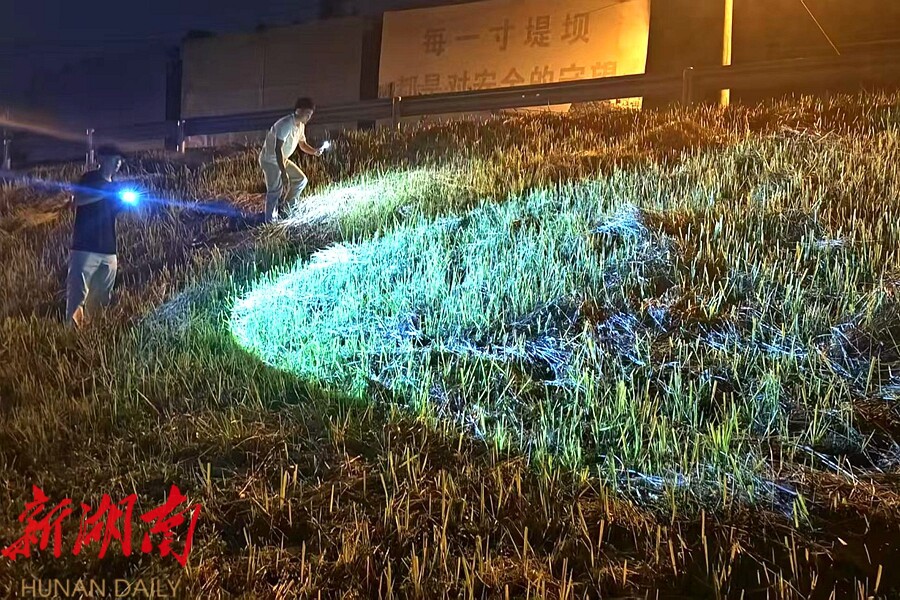 视外桃源客户端6月24日讯(通讯员:黄方星)“水情一刻不缓,我们一刻都不能松懈,必须确保每一寸堤坝都安全!”6月23日晚,漳江垸水利管理委员会的几名技术人员打着手电筒仔细查看堤坝情况。受6月20日以来强降雨及五强溪水库泄洪影响,沅水桃源段堤防持续高水位运行。为确保堤防安全,桃源县漳江垸、陬溪垸、木塘垸、车湖垸等堤防管理单位均派出技术人员开展24小时巡堤查险工作。