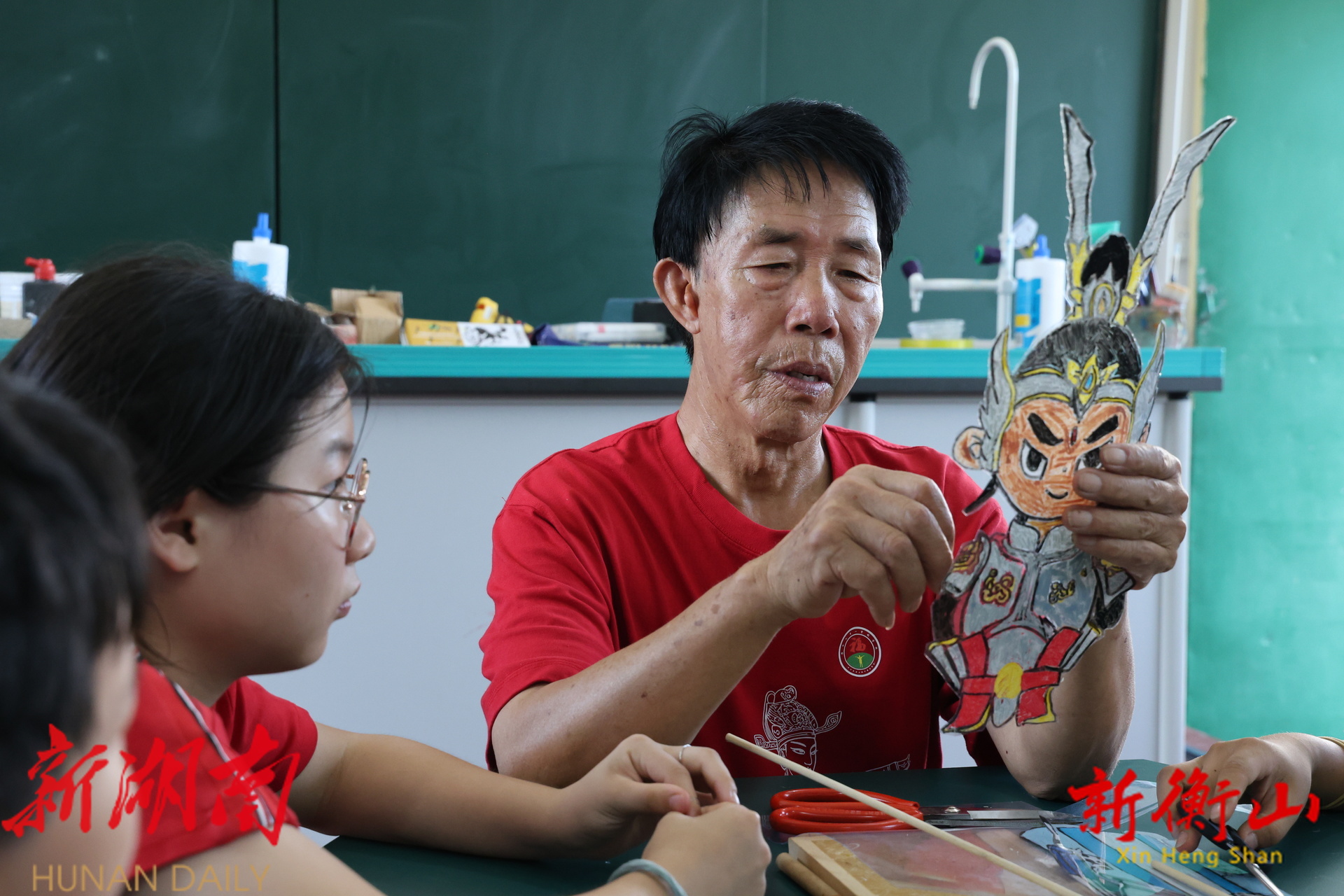 在皮影戏学习中成长的不止技艺。学生胡帅曾因雕刻速度慢想放弃,“奶奶跟我讲了很多皮影知识,我才意识到,衡山皮影戏是国家非物质文化遗产,我们不来传承,谁来传承呢?” 从陌生到热爱,从学习到传承,这群乡村孩子用稚嫩的肩膀扛起非遗传承的责任。