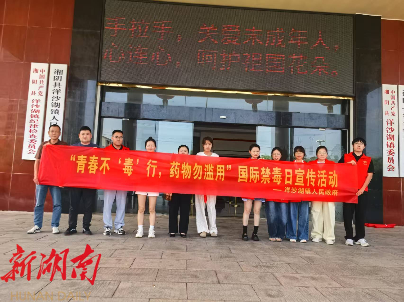 湖南日报·新湖南客户端6月26日讯(通讯员 胥子良) 近日,湘阴县洋沙湖镇精心组织开展“6·26”国际禁毒日集中宣传系列活动。此次活动由镇禁毒办牵头,联合派出所、司法所、团委、妇联、新时代文明实践所等多部门协同发力,通过多元化宣传矩阵将禁毒知识送到群众身边,全力营造“全民参与、共建无毒”的浓厚社会氛围。