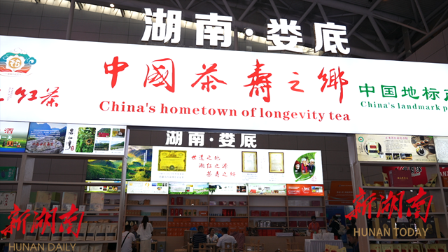 在湖南展区,新化红茶、新化黄精、新化水酒、白溪豆腐等国家地标产品整齐陈列,吸引许多国内外商家前来观展、品尝、洽谈业务,对新化的产品给予了很高的评价。