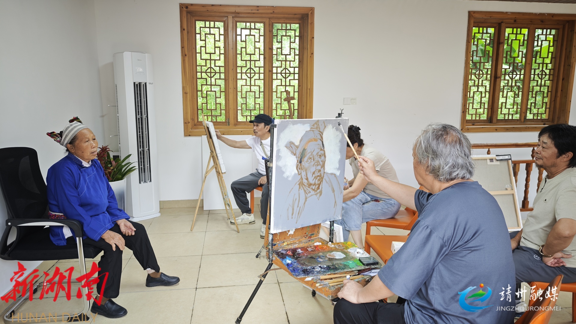 艺术家运用国画将人物肖像转化为一幅幅生动的艺术作品(胡耀文 摄)