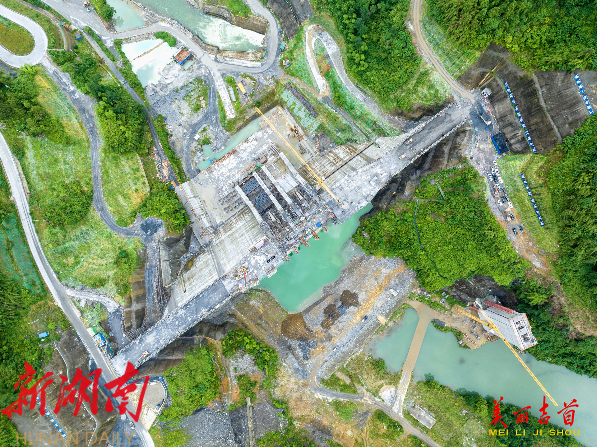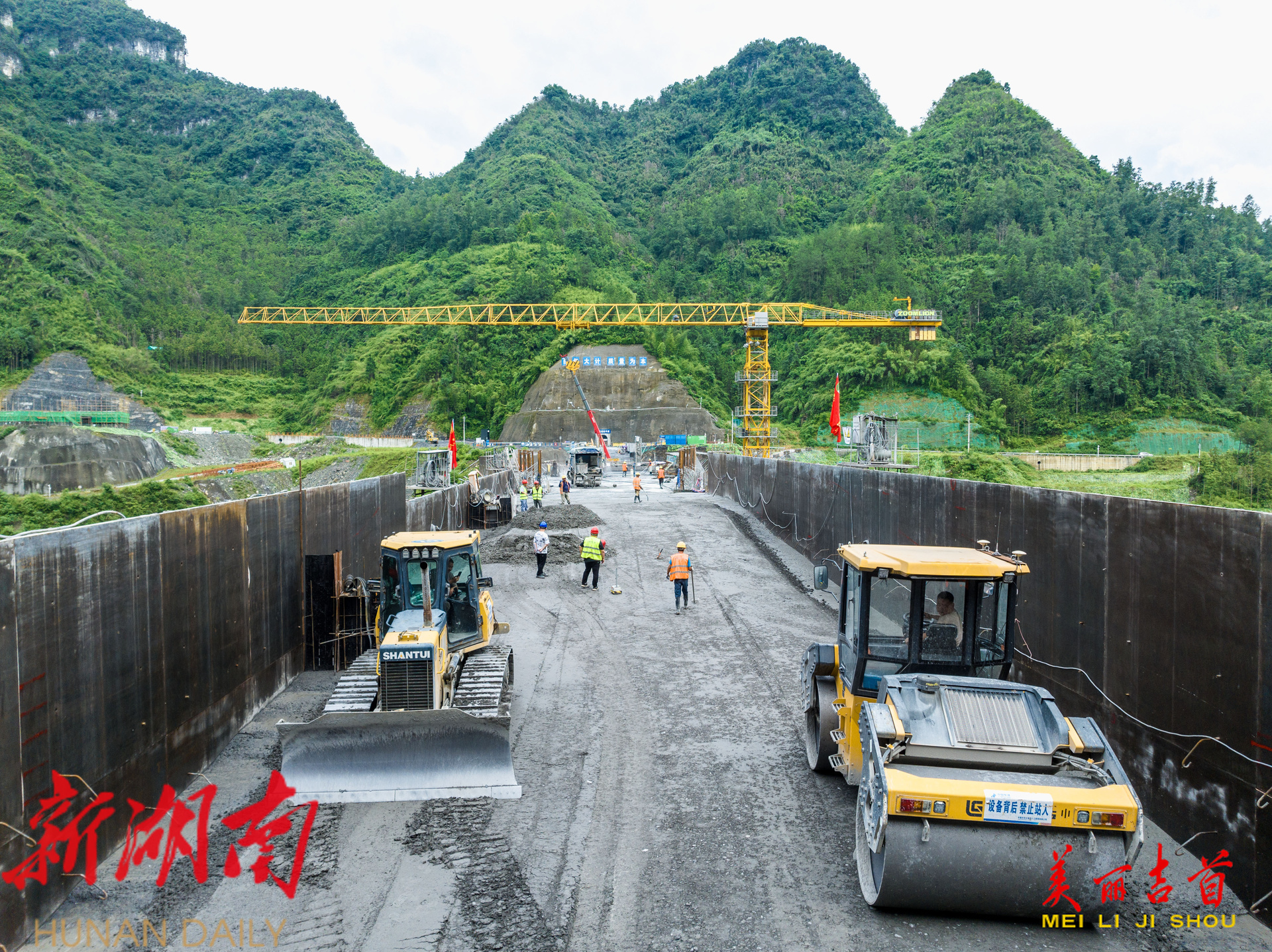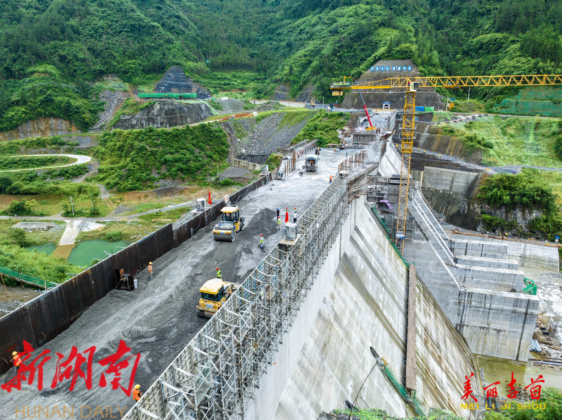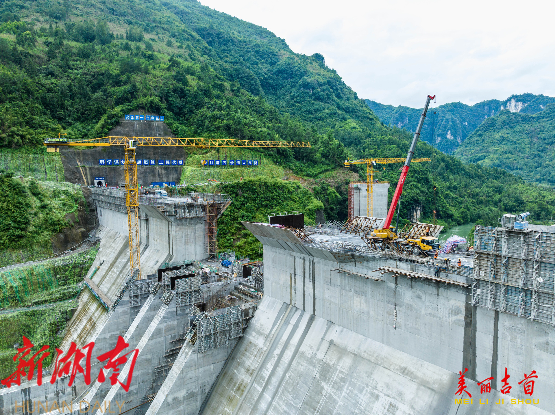 吉首市融媒体中心6月29日讯(全媒体记者 何鑫 彭璟 龙韬宇)6月28日,随着大坝右岸最后一层碾压混凝土浇筑完成,吉首市大兴寨水库工程大坝达到EL312.5高程。