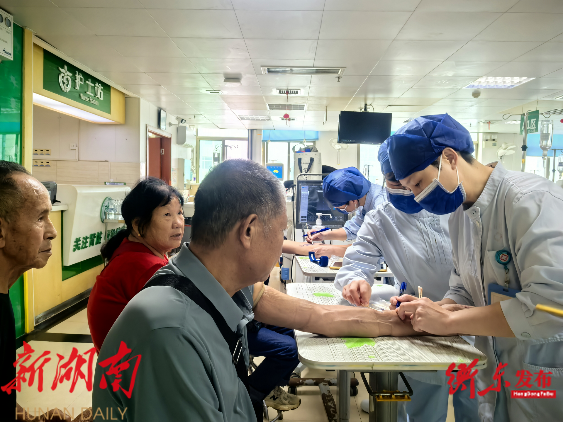衡东融媒6月29日讯(通讯员 刘洋 陈媛)为进一步提升尿毒症患者透析质量,优化动静脉内瘘精细化管理,南华大学附属南华医院血液净化中心于6月23日至26日期间,在血液净化中心候诊室成功举办了一场尿毒症患者内瘘穿刺图谱制定活动。此次活动以“以患者为中心”为服务理念,旨在通过科学规划与精细化管理,为透析患者打造更加安全、高效的“生命线”。