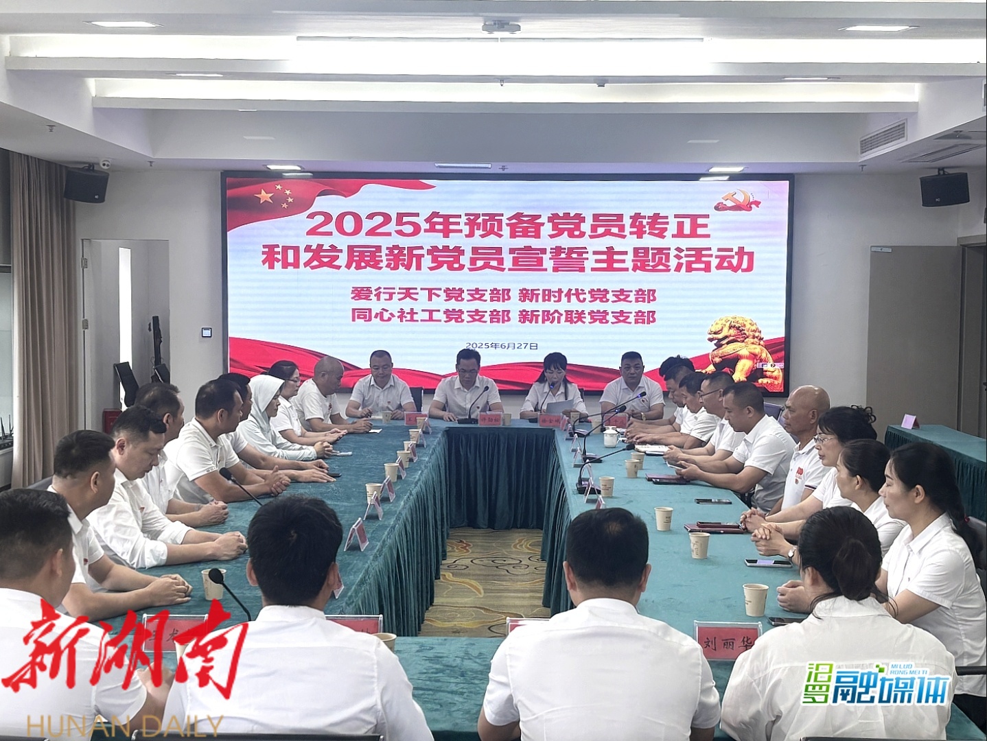 湖南日报·新湖南客户端6月29日讯(通讯员 曾远航)6月27日,汨罗社会组织爱行天下党支部、新时代党支部、同心社工党支部、新阶联党支部联合举行"预备党员转正暨新党员宣誓"主题党日活动。市委社会工作部副部长许劲松、文明实践服务中心副主任王永林出席活动。