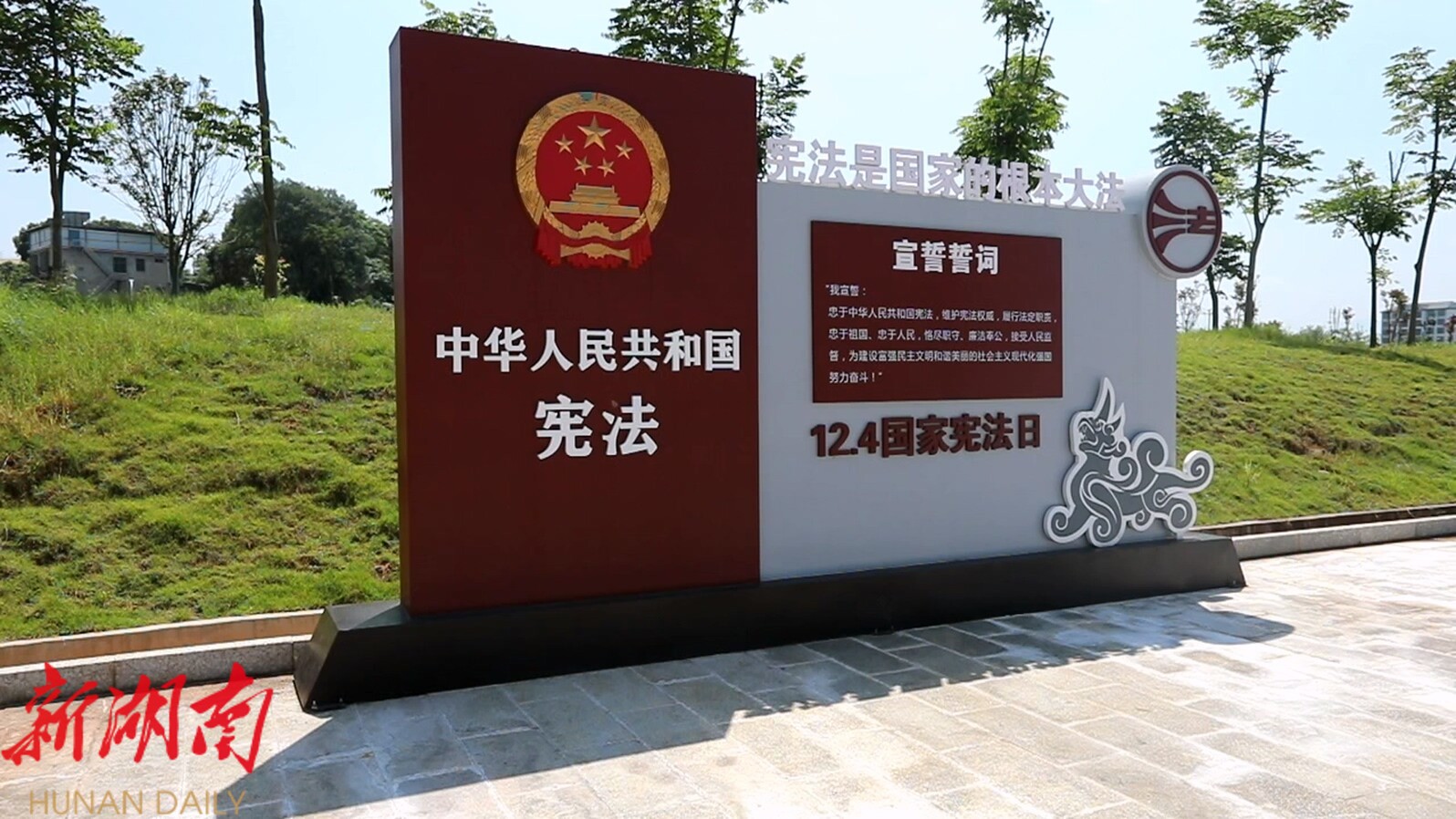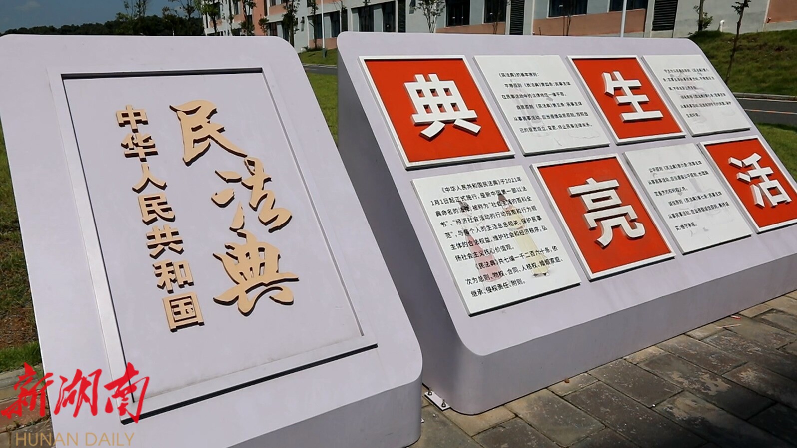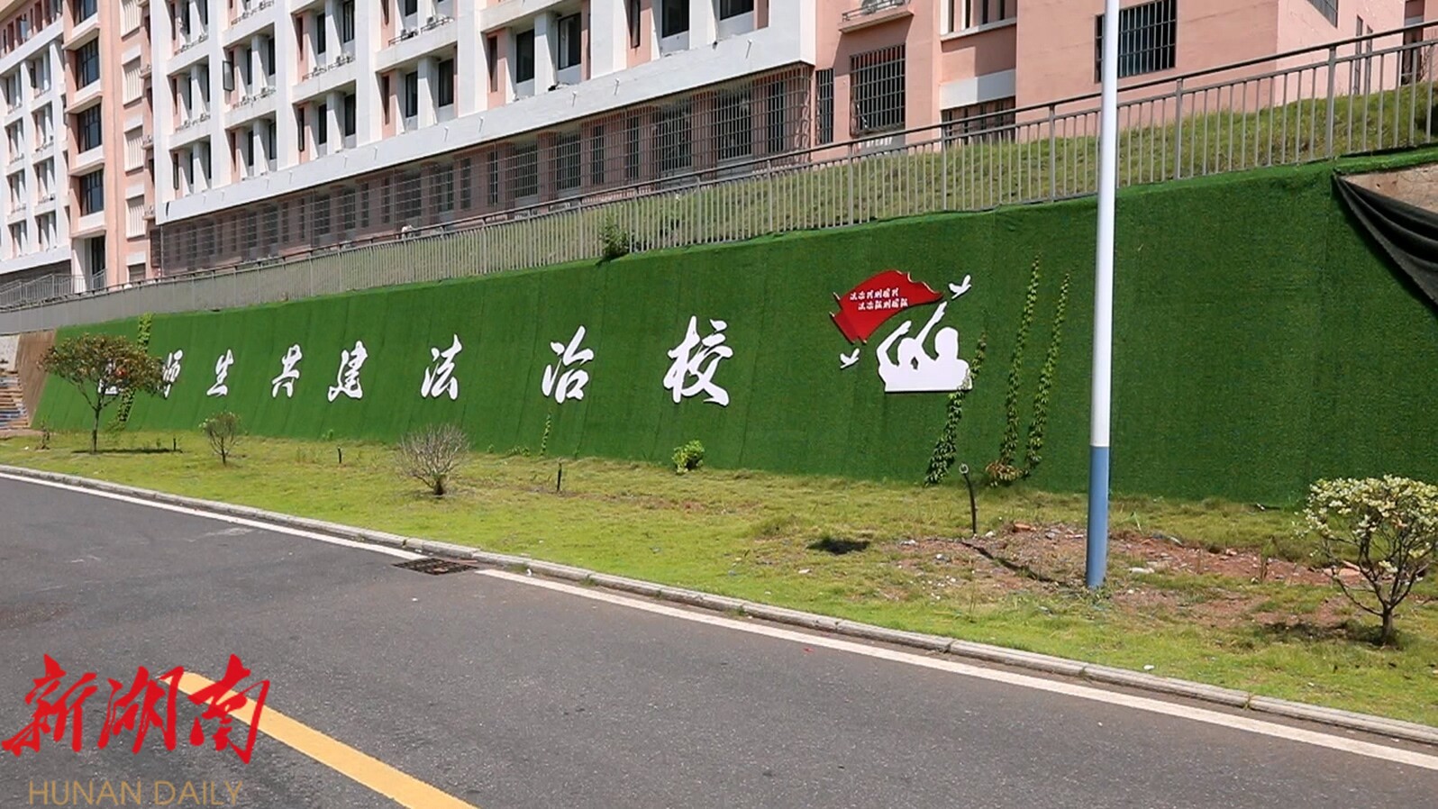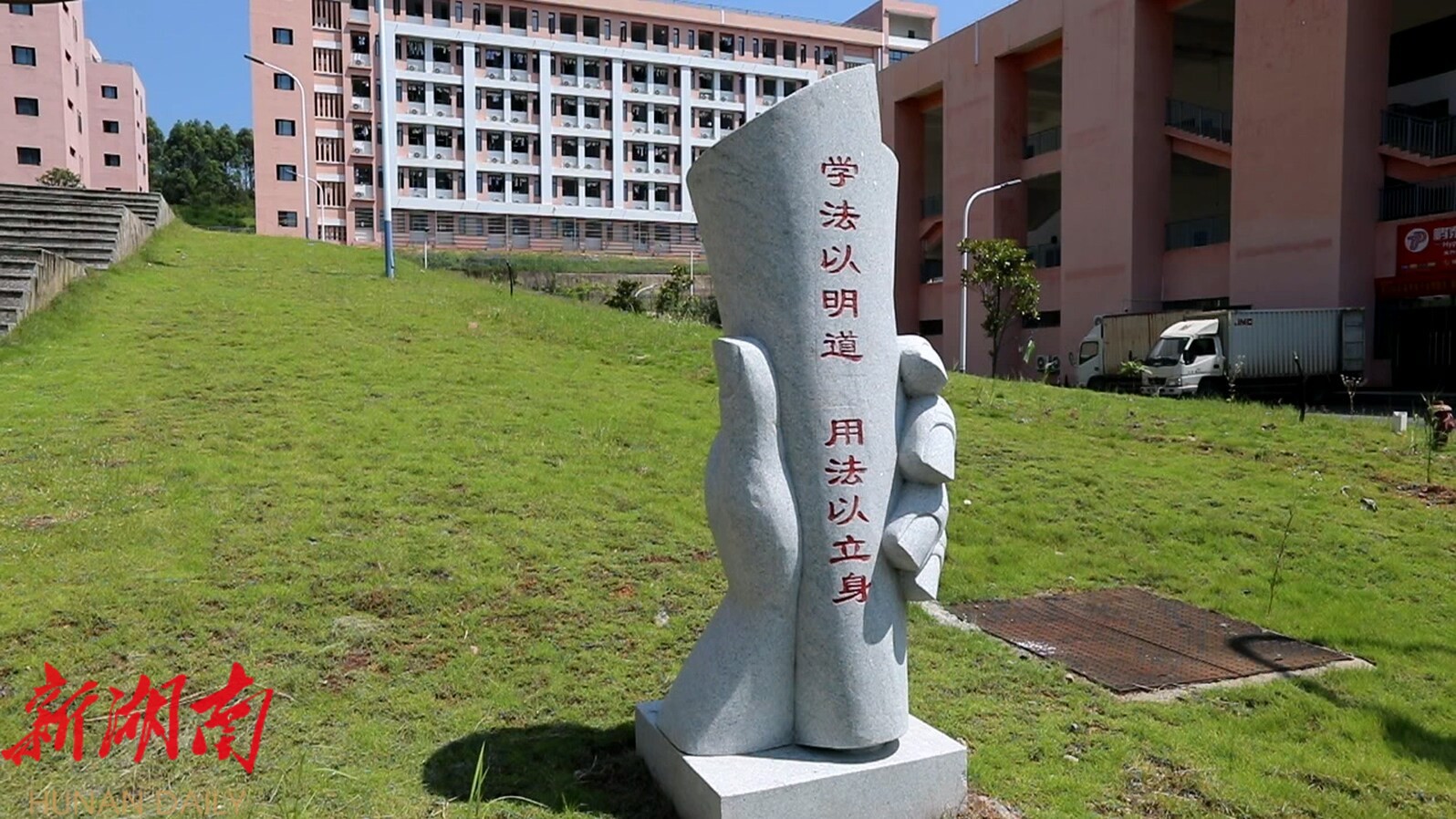 走进永兴一中,法治元素与校园文化深度融合,教学楼走廊变身“法治文化长廊”,30块主题展板以漫画、案例、法条解读等形式呈现《宪法》《民法典》等核心内容,校园广场“法槌”主题雕塑矗立,营造出独特的校园法治文化氛围。