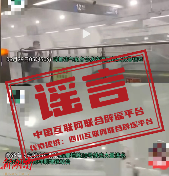 真相: 6月29日,有网民发布视频称,“成都地铁10号线大量进水,狂风裹挟暴雨冲刷地铁站台”,引发讨论。成都地铁官方微博当日发布信息称,目前成都地铁全线网运营秩序正常,所有出入口正常开放。针对网络上传播“成都地铁10号线大量进水”等视频信息,经核实,该视频画面非当日真实情况,请广大市民乘客放心乘坐。(来源:“成都网络辟谣”微信公众号、@成都地铁)