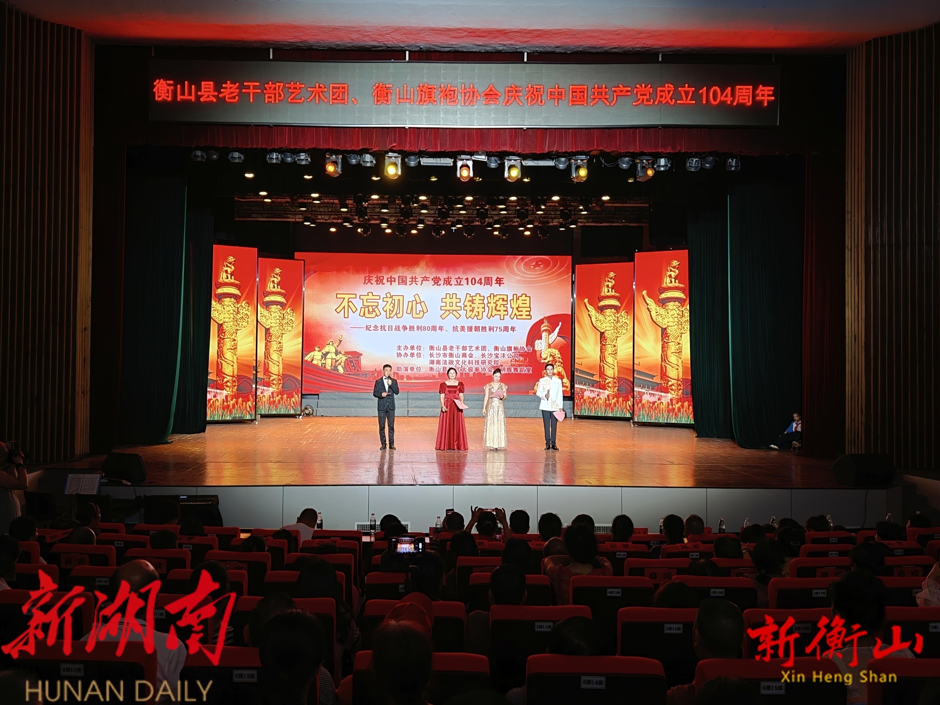 新衡山客户端7月1日讯(记者:何思霞 刘星语)为庆祝中国共产党成立104周年,讴歌党的光辉历程,6月30日晚,由县老干部艺术团、县旗袍协会联合主办的庆“七一”文艺晚会在县剧院精彩上演。数百名文艺爱好者齐聚一堂,共同感受红色文化的魅力,表达对党的深情祝福。县领导赵晓阳出席。