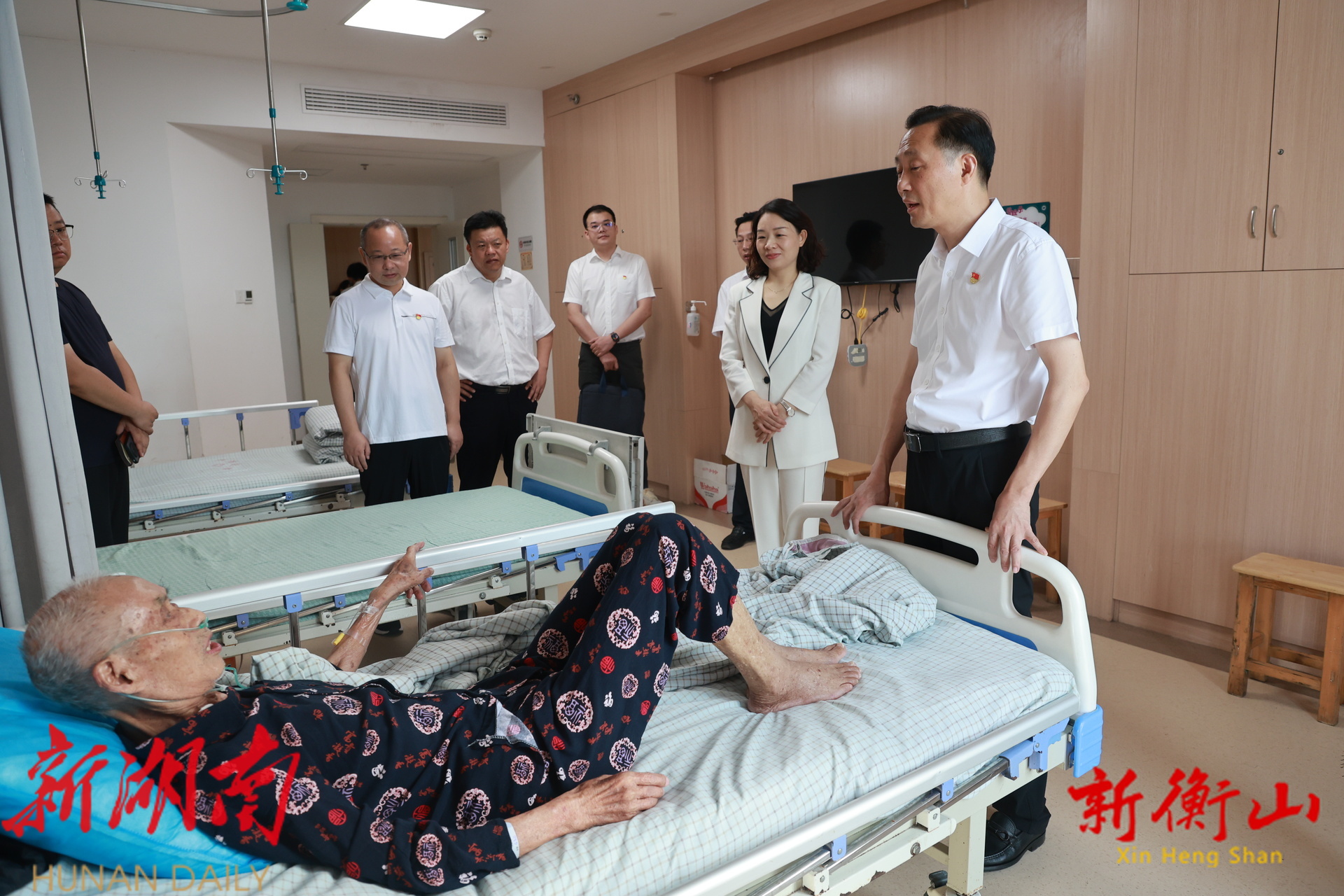 新衡山客户端7月1日讯(记者:李圣景 刘永欢)7月1日上午,衡阳市政协副主席、衡山县委书记戴新贤前往县人民医院,看望慰问了正在住院疗养的老党员赵聚益同志。县委常委、组织部部长彭双娣参加。