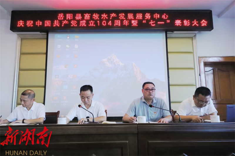 湖南日报·新湖南客户端7月1日讯(通讯员 王娟) 在中国共产党成立 104 周年之际,岳阳县畜牧水产发展服务中心举办了庆祝中国共产党成立 104 周年暨“七一”表彰大会主题活动,以热烈的氛围、庄重的仪式,向伟大的党献上诚挚的生日祝福,激励全体党员干部在新时代畜牧水产事业征程中砥砺奋进、再创佳绩。