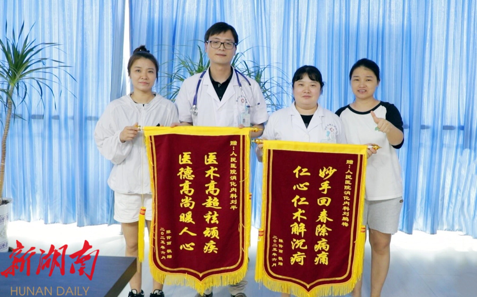 湖南日报·新湖南客户端7月1日讯(通讯员 赵晶晶)6月30日,市民陈伶丽与家属手捧两面锦旗,来到冷水江市人民医院全科医学科,对科室医护人员的帮助表示感谢,一起去看看。