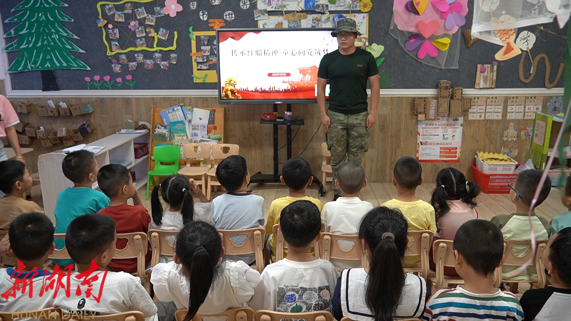 洞口融媒7月1日讯(记者:江京晟) 7月1日, 洞口县源泉幼儿园开展“传承红船精神 童心向党筑梦”七一主题活动 , 孩子们聆听党的故事,萌发爱党爱国的情感。