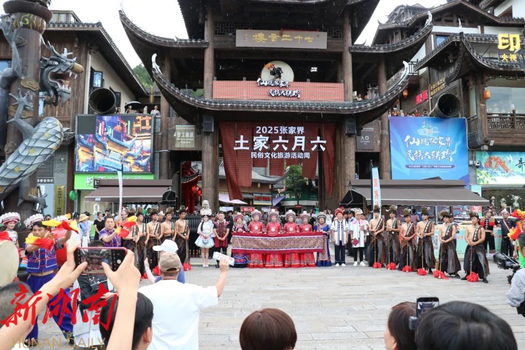 湖南日报·新湖南客户端7月1日讯(通讯员 胡苗 欧媛 廖芯仪 陈婉仪 ) 6月30日,张家界七十二奇楼变身欢乐的海洋,“仙境张家界·民族大联欢——2025张家界‘土家六月六’民俗文化旅游活动周”盛大举行,众多游客和当地居民齐聚一堂,沉浸式体验土家族独特的民俗文化。