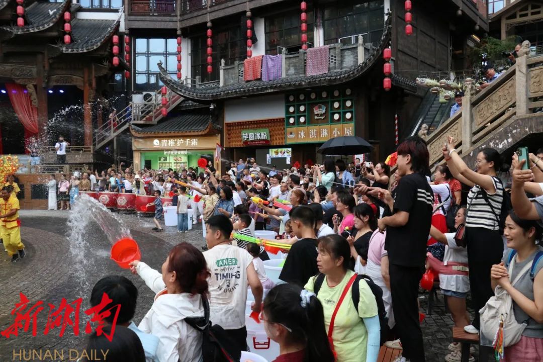 《晒狂欢》·土家泼水狂欢活动将氛围推向高潮。土家泼水祈福仪式后,一条条泼水龙欢快巡游,所到之处,人群欢呼。现场游客纷纷拿起水盆、水枪,加入到泼水狂欢互动中,水花四溅,欢声笑语回荡在景区,大家在水中传递着祝福,享受夏日清凉。来自四川的游客陈女士兴奋地说:“第一次参加这样的泼水狂欢,太开心了!泼水龙特别震撼,感觉浑身都被注入了活力,这是一次难忘的体验。”