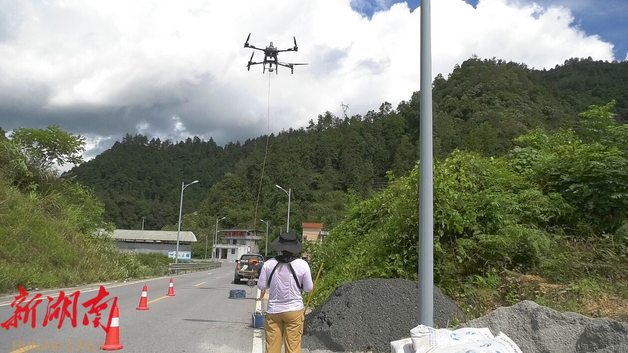 新湖南客户端7月1日讯(通讯员 余思颖)在湘西土家族苗族自治州古丈县古阳镇南山村的崇山峻岭间,一声不同寻常的轰鸣划破了茶山的宁静。不是背篓沉重的喘息,也非开山凿石的炮响——一架身形矫健的工业级无人机正化身“空中骡马”,精准地将一袋袋水泥、沙石吊运至另一侧的山腰。