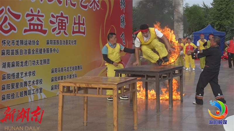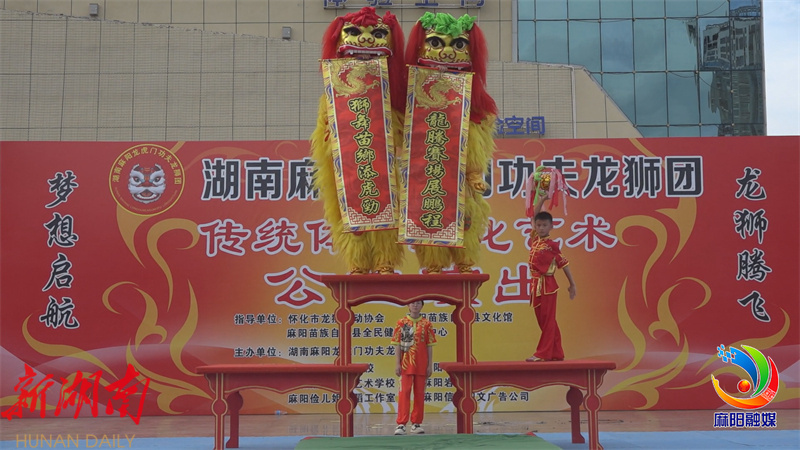 麻阳龙虎门功夫龙狮团公益演出活动亮相锦江广场