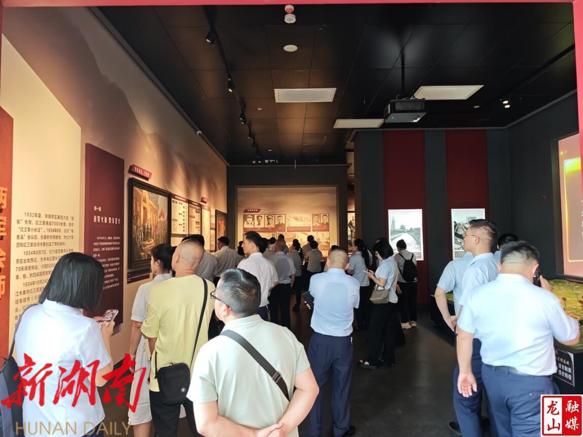 当天,党政机关、企事业单位、社会团体及基层党员经预约前来参观。他们在纪念馆前的红色广场列队,重温入党誓词,随后跟随讲解员的脚步,走进湘鄂川黔革命根据地纪念馆与其他革命旧址参观 ,一件件锈迹斑斑的武器,虽历经岁月侵蚀,但仍能让人感受到当年战斗的激烈与残酷;一封封饱含热血与信念的信件,承载着革命先辈们对胜利的渴望和对家国的深情。这些珍贵的文物史料,搭配讲解员生动的讲解,让参观者身临其境,深切感受到革命先辈们的无畏与坚毅。