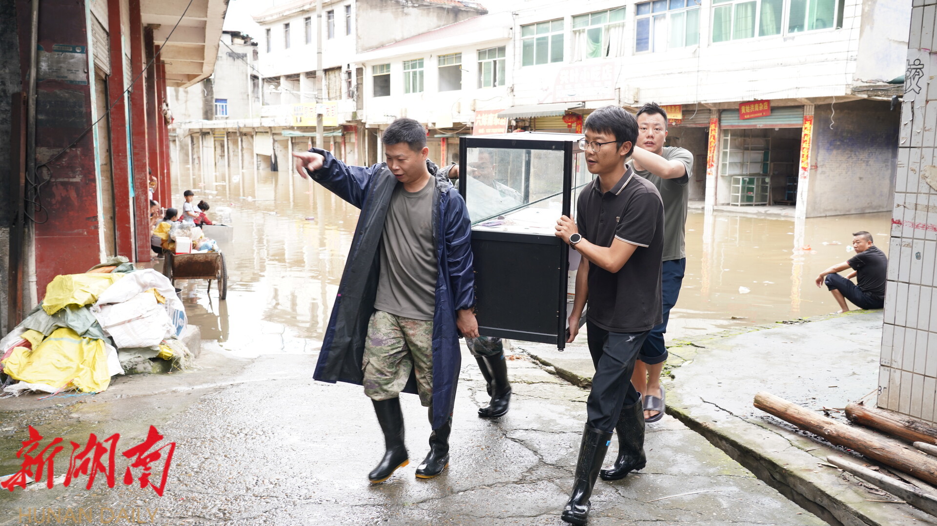 与此同时,每当遇到抗洪抢险、森林灭火等急难险重任务时,杨阳在统筹做好党政办后勤保障的同时,总是冲锋在一线。6月22日至23日,受持续强降雨及上游泄洪影响,位于沅水河畔的铜湾镇沙螺湾社区、兴隆街社区老街及铜湾村部分低洼区域相继出现严重积水。杨阳同其他同事率先冲到群众转移、物资转运一线。当得知商户杨冬妹、杨洪伟因大量物资未及时转移心急如焚时,杨阳和同事们用肩扛手提的方式将他们的10多坛罐装米酒和上千斤的榨油机转移到安全区域,得到了群众的高度赞扬。“如果没有政府干部帮忙,就会损失一两万块钱,我们搬不动了,(货物)就会被洪水冲走,感谢政府干部。”商户杨洪伟感激地说道。