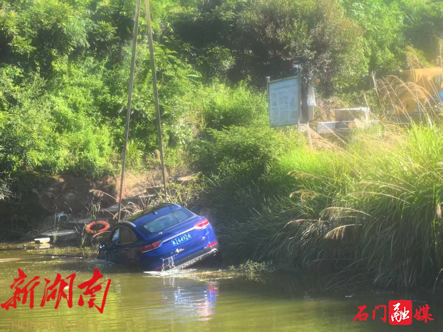 新石门客户端7月3日讯 2025年7月1日晚上10:25分左右,三圣乡居民刘某自驾一辆越野车从S308线—石门县湘冠打蜡厂的村组道路经过时,因低头看手机,导致连人带车冲进了楚江街道红土社区10组桐子峰堰塘中。