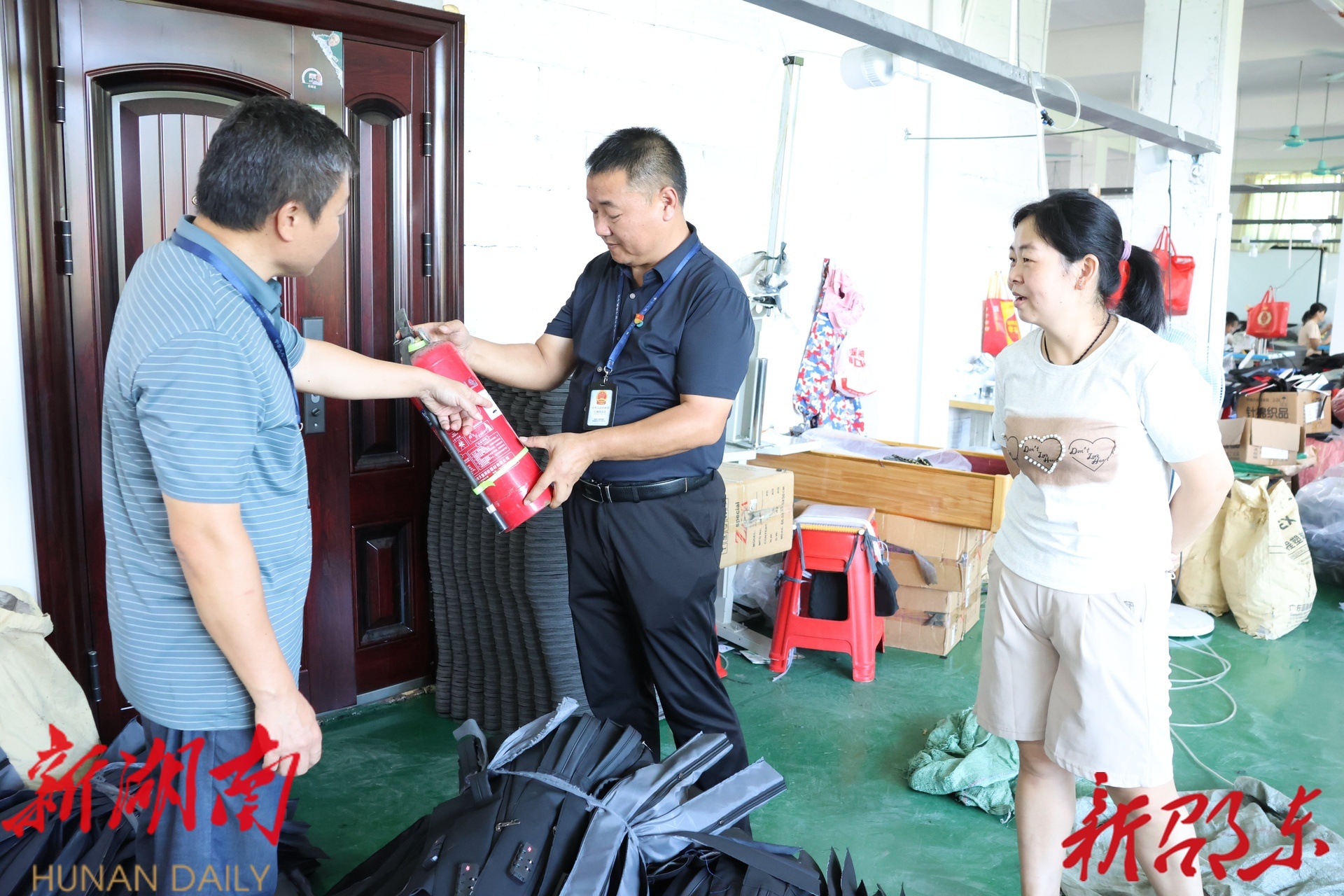 当前正值夏季高温,是各类安全生产事故的易发高发期。为了确保辖区安全,李新求每天都要带领执法队员,到各企业、门店、危险路段,重点就燃气安全、烟花爆竹安全、道路交通安全、食品安全等领域进行检查指导。7月2日,在超兰箱包厂,李新求在检查中发现该厂生产车间内,货物到处乱堆堵塞了应急疏散通道,当即要求企业负责人立即整改,并帮着一起将货物排放整齐,消除安全隐患。