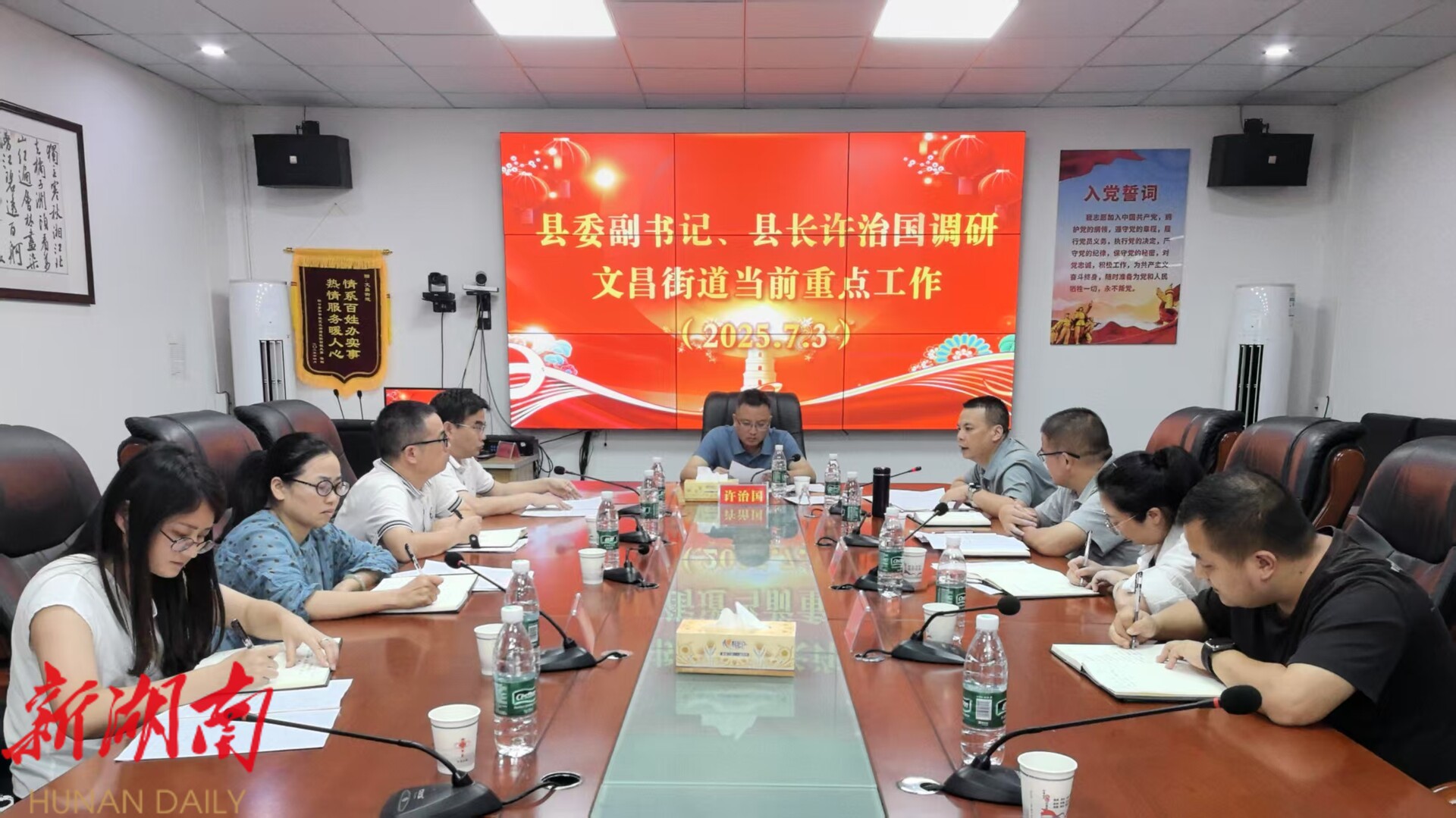 洞口融媒7月3日讯(记者:林巍浩) 7月3日,县委副书记、县长许治国到文昌街道调研信访、反电诈、安全生产、乡村振兴、产业发展等当前重点工作并召开座谈会。