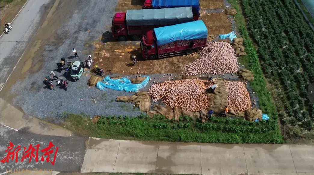 眼下,围堤湖蔬菜产业园内多家合作社种植的各类品种南瓜纷纷迎来收获季,来自河南、山西、安徽等全国各地的车队依次入场装车、过磅。这得益于围堤湖周边丰茂的水土环境,品种丰富、口感厚实的汉寿南瓜在全国各地市场积累了优质口碑。