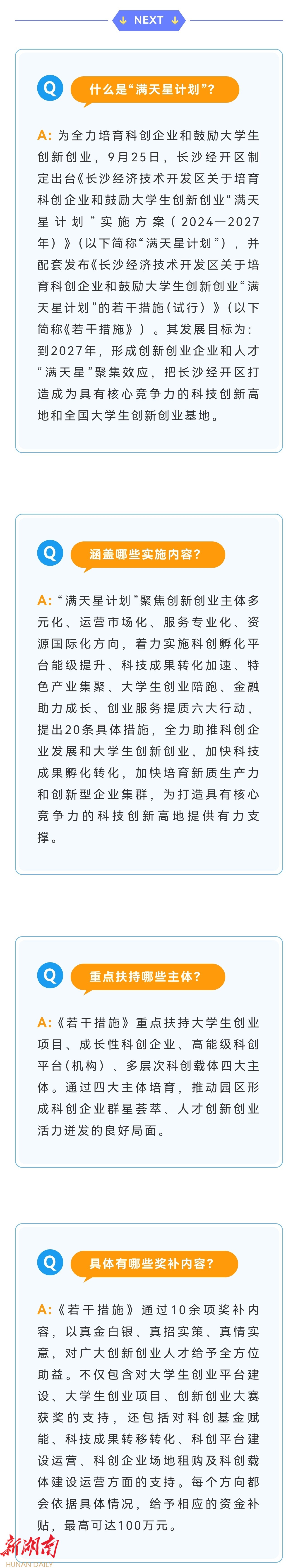 湖南日报·新湖南客户端9月27日讯(长沙经开区工作站记者 欧亚琦) 为深入贯彻落实党的二十届三中全会精神和省、市有关重要要求,奋力实现“三高四新”美好蓝图,建设全球研发中心城市集聚区,打造全球高端装备制造业基地,全力支持科创企业和大学生创新创业,9月25日,长沙经开区制定出台《长沙经济技术开发区关于培育科创企业和鼓励大学生创新创业“满天星计划”实施方案(2024—2027年)》(以下简称“满天星计划”),并配套发布《长沙经济技术开发区关于培育科创企业和鼓励大学生创新创业“满天星计划”的若干措施(试行)》(以下简称《若干措施》)。
