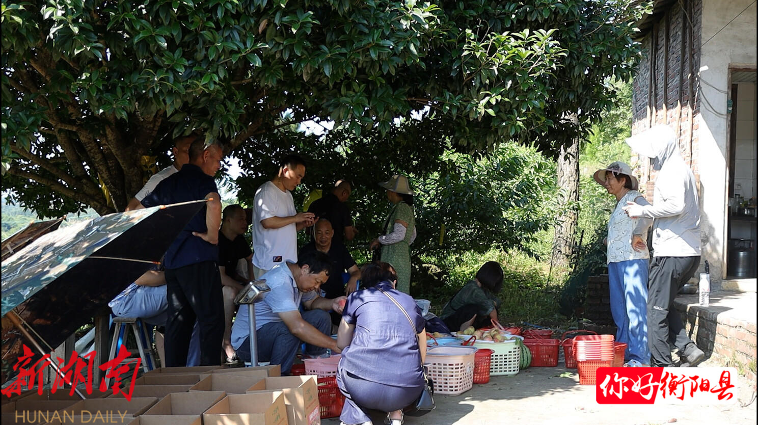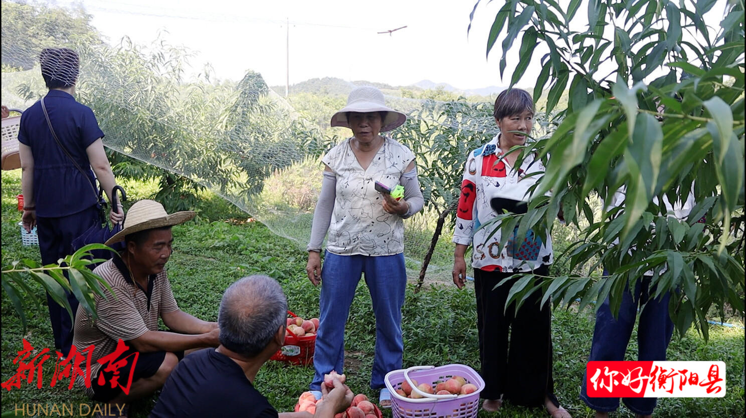 2015年,村民王南林将这片60亩荒山承包流转,种植特色水果,这种阳山水蜜桃是他四年前引进的新品种,果型大、色泽鲜艳、口感脆甜,深受市场青睐。得益于他的精心管护,今年水蜜桃不仅产量创新高,而且上市周期长。由于阳山水蜜桃品质优良,市场售价较普通桃子高出不少,经济效益十分可观。
