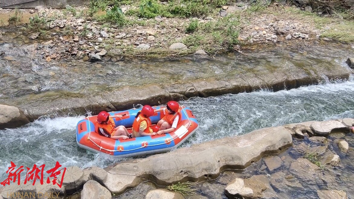 7月 4 日,在淘金村生态漂流起点,记者看到游客们身着救生衣,在安全员全程护航下 有序 登艇。随着皮划艇顺流而下,河道激起串串浪花,两岸绿意葱茏、峰峦叠翠,艇上的欢声笑语与林间鸟鸣交织,游人乘艇穿行其间,恍若置身一幅流动的山水长卷。