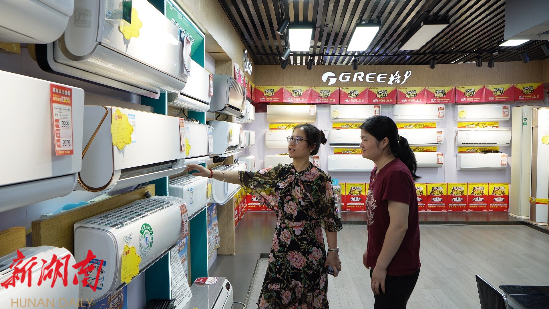 顾客谭女士刚下单一台空调,她向记者表示:“现在天气越来越热了,我家里原来那台空调制冷效果不太好,所以说就准备来换一台新的,加上现在有国补,还是比较实惠的。”