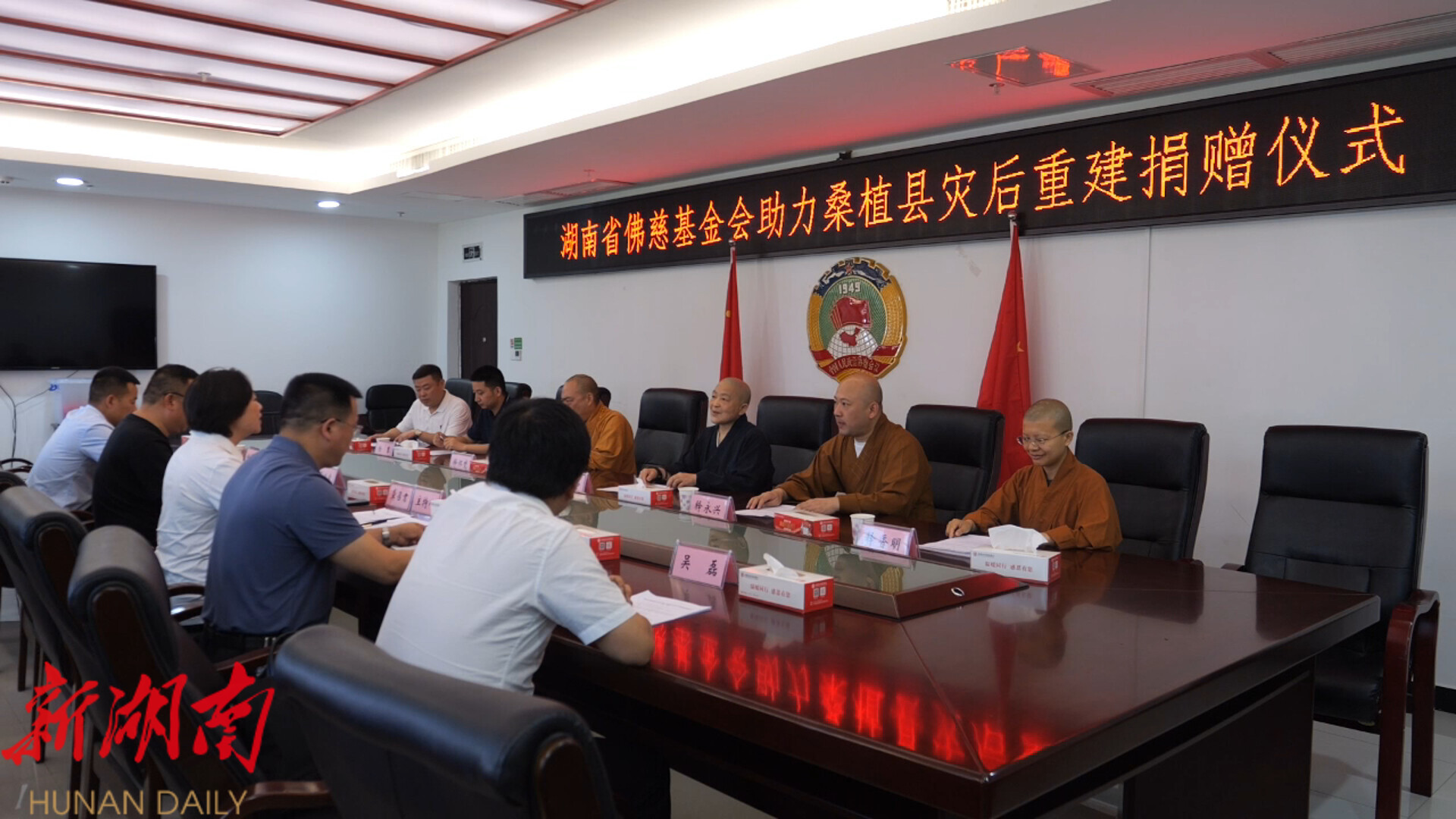 湖南日报·新湖南客户端7月5日讯(通讯员 钟彬豪)7月5日,湖南省佛慈基金会定向捐赠20万元支援桑植县重灾乡镇道路重建。县委常委、统战部部长龚召君参加捐赠仪式。
