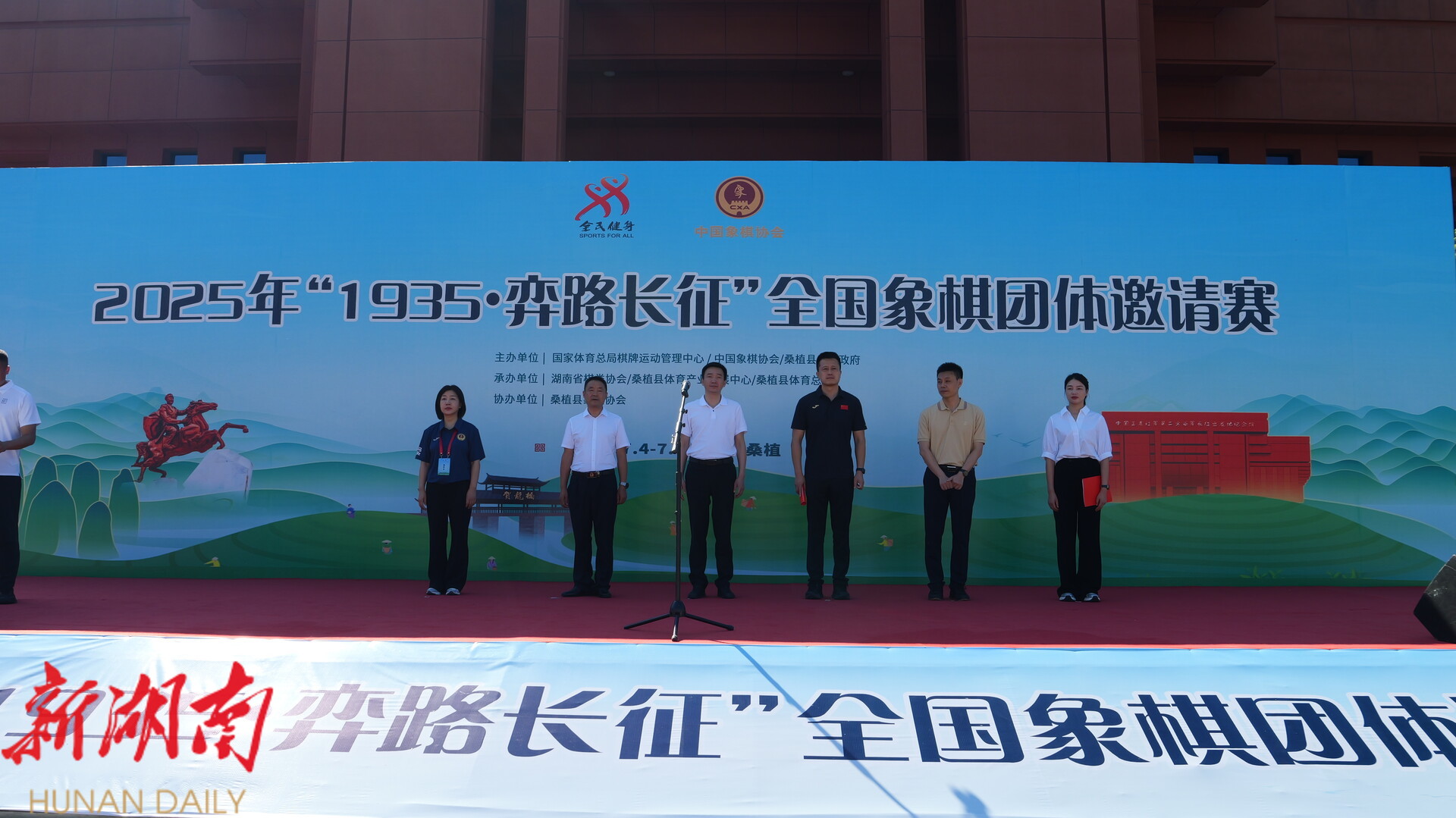 湖南日报·新湖南客户端7月5日讯(通讯员 张芬 彭紫艳 庄丹丹)7月5日,“1935·弈路长征”全国象棋团体邀请赛在湖南省桑植县正式落子。赛事由国家体育总局棋牌运动管理中心、中国象棋协会和桑植县人民政府联合主办,来自全国30支代表队的120余名棋手齐聚一堂,在棋盘方寸间感悟长征精神,践行初心使命。国家体育总局棋牌运动管理中心象棋部副主任陈浩,国家体育总局棋牌运动管理中心象棋部干部陈环宇,桑植县领导刘克敏、唐妙玲出席活动。