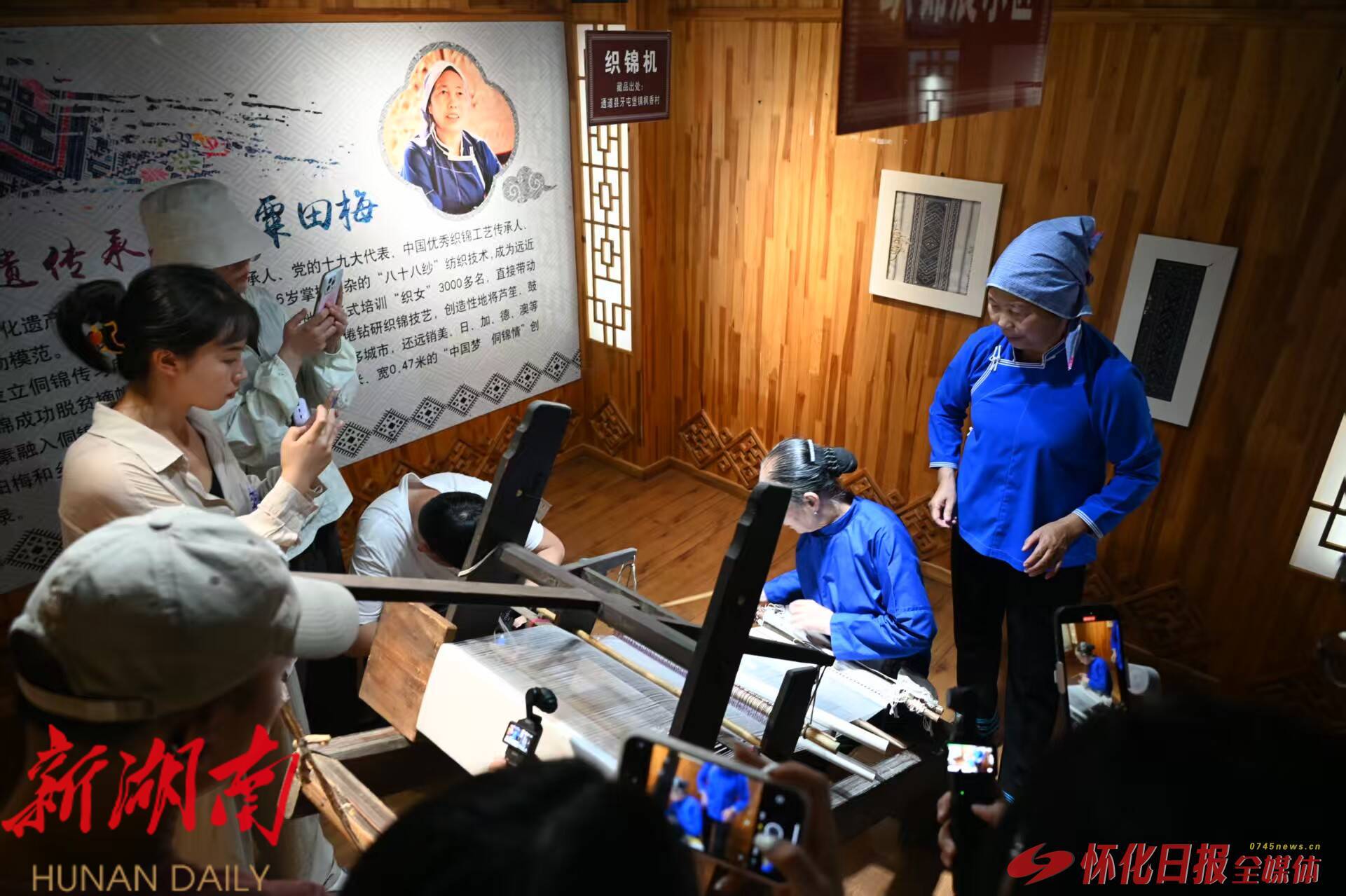 粟田梅向大家介绍侗锦 (以上照片均由怀化日报全媒体记者 张卓 摄)