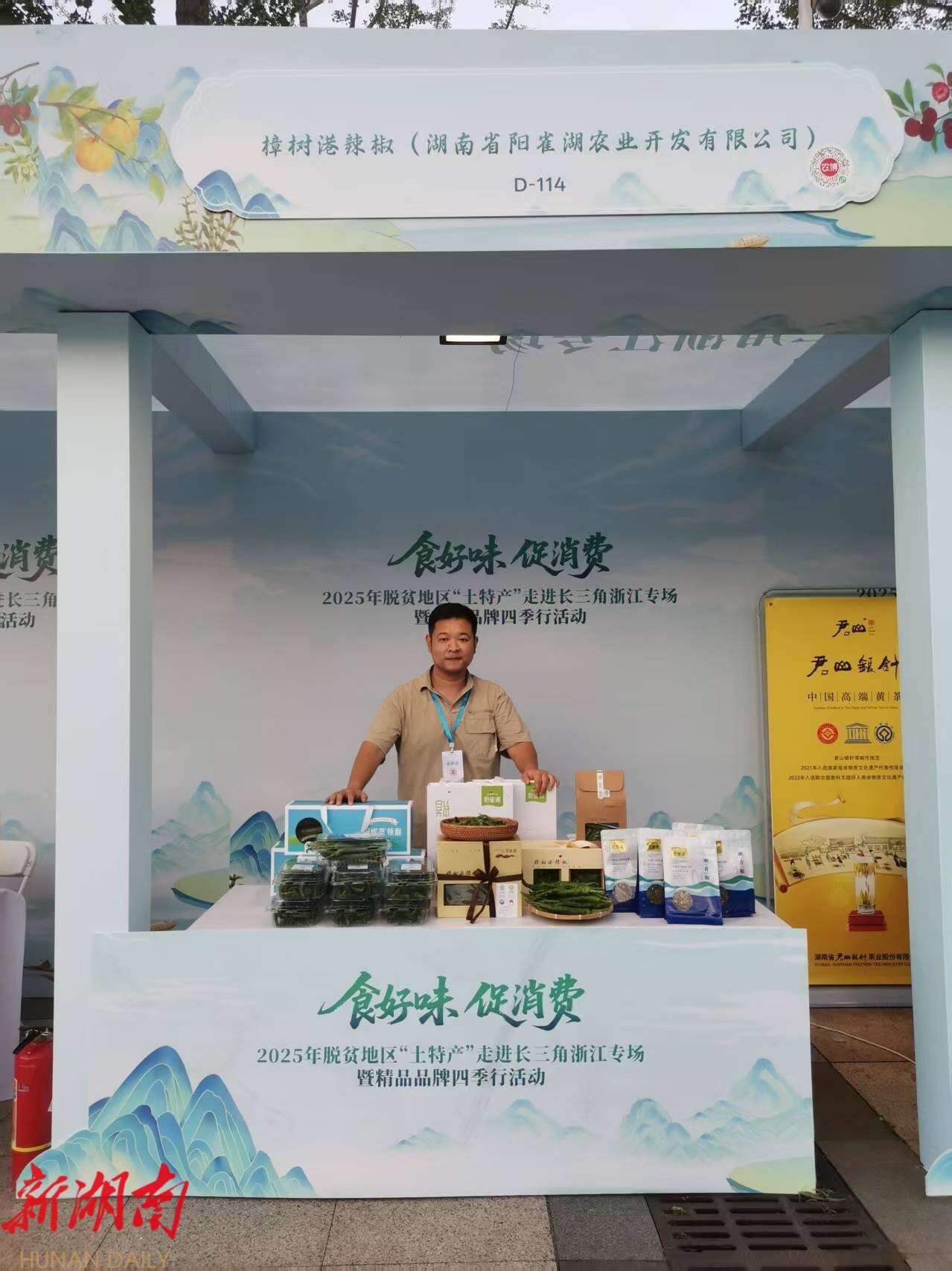 湖南日报·新湖南客户端7月6日讯(通讯员 徐晚晴 任艳芳)近日,2025年脱贫地区“土特产”走进长三角浙江专场暨精品品牌四季行活动在温州举行,来自全国各地的300余家企业共襄盛会。在湘阴县农业农村局的组织下,湖南省阳雀湖农业开发有限公司作为全国精品品牌‘樟树港辣椒’的代表企业携樟树港辣椒参展,其展区成为本次活动的焦点,赢得了现场广泛关注。