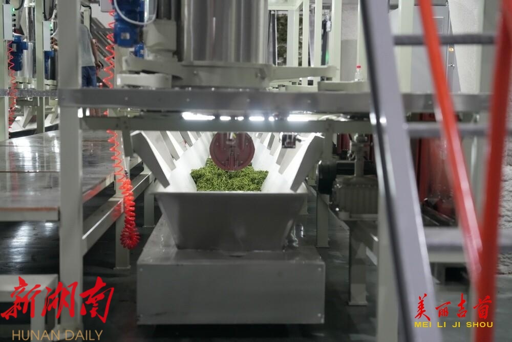 “现在我们正处在试生产阶段,生产线一天平均加工7000斤鲜叶,产出干茶约1300斤左右,预计后续最大产能可以达到每天加工四万斤鲜叶以上。”吉首市神秘谷茶业有限责任公司生产部部长余畅宇说道。