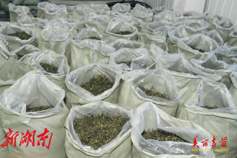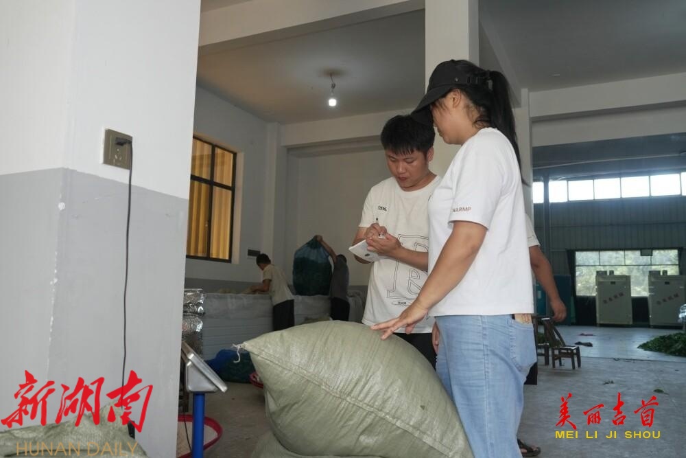 茶农们上午辛勤采摘的茶叶马上就会送到附近的茶厂收购,由茶厂简单处理后送往吉首晟兴农业开发有限责任公司旗下神秘谷茶业有限责任公司的夏秋茶生产线统一加工。在苗疆茶业科技有限公司的厂房里,前来售卖茶叶的农户络绎不绝,当场验收称重,当场就可以拿到现钱。苗疆茶业科技有限公司加工厂厂长谭文介绍:“我们厂里面可以收六七千斤茶叶,农户每天早上自己去采摘,采摘回来到厂里集中一起收,晚上就送到加工车间。”