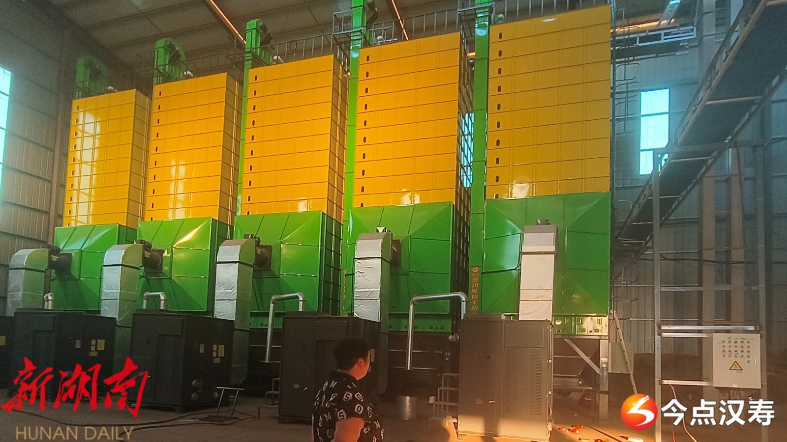 乡里金丰米业,采用了“即收即烘”模式,5台新安装的30吨级循环式烘干机全天候运转。通过标准化粮仓与智能温控系统,可有效实现“优粮优储”。
