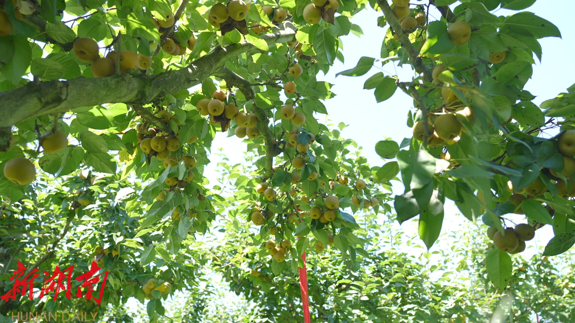 7月7日,记者来到洞口县竹市镇金龙园艺场,放眼望去,连片的梨树郁郁葱葱,圆润饱满的梨果缀满了枝头,长势喜人。走进果园,空气中弥漫着清甜的果香气息,梨树下,三五成群的果农正忙着采摘。