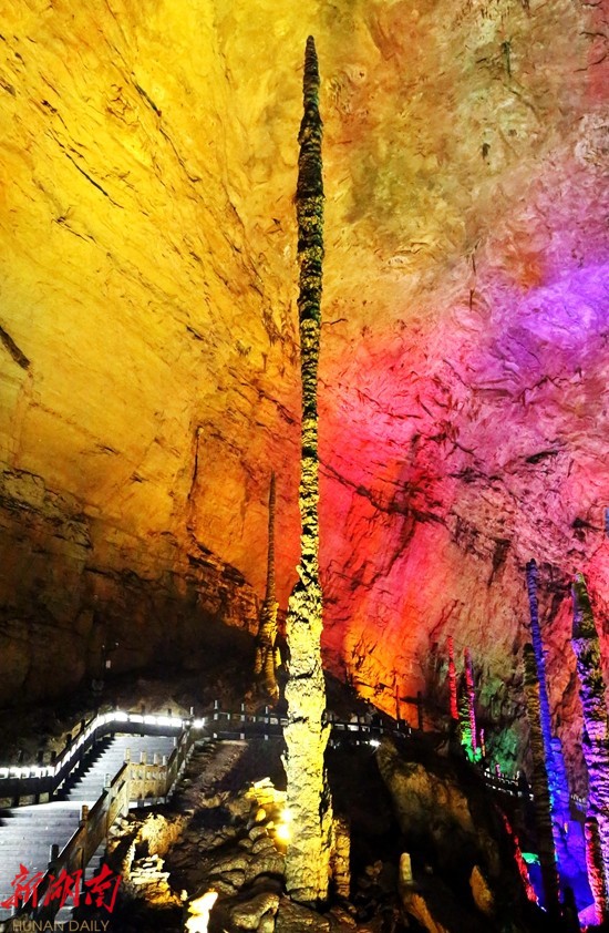 当黄龙洞的灯光次第亮起,一场通往地心的奇幻冒险正式启幕!万载钟乳石在穹顶垂落成水晶帘幕,高达19.2米的“定海神针”直指苍穹。穿行于石笋森林间,水滴声在穹顶回响,沉睡亿万年的地质奇观,瞬间点燃血脉中探险的渴望与未知的兴奋——恰如即将启程的人生新卷,每一次转角,都在解锁未知的精彩篇章!